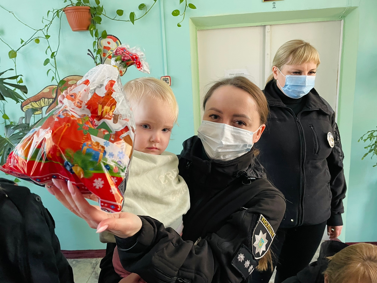 Правоохоронці привітали малечу з днем Святого Миколая та роздали дітлахам солодкі подарунки.