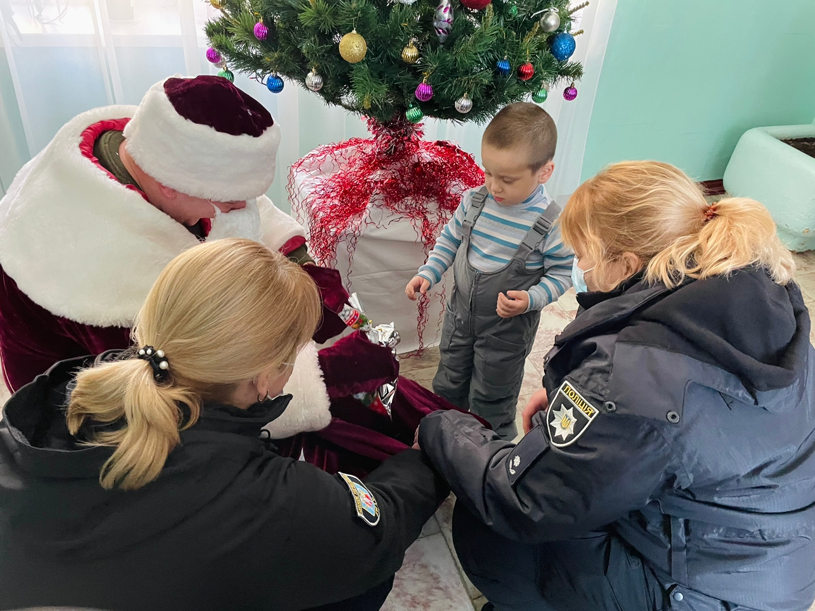 Працівники поліції побажали маленьким мешканцям району скорішого одужання та втілення їх найзаповітніших бажань. Також святковий персонаж разом із «дитячими» поліцейськими роздав усім діткам солодкі подарунки й пообіцяв прийти до кожного із них у наступному році.