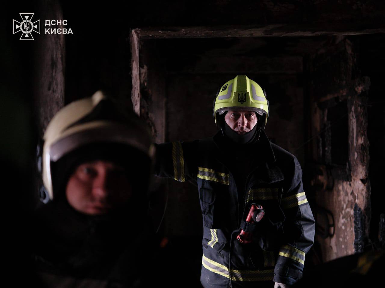 Аварійно-рятувальні роботи тривають у Києві на двох локаціях у Дніпровському та Деснянському районах - житлових будинках, вражених російськими ударами.