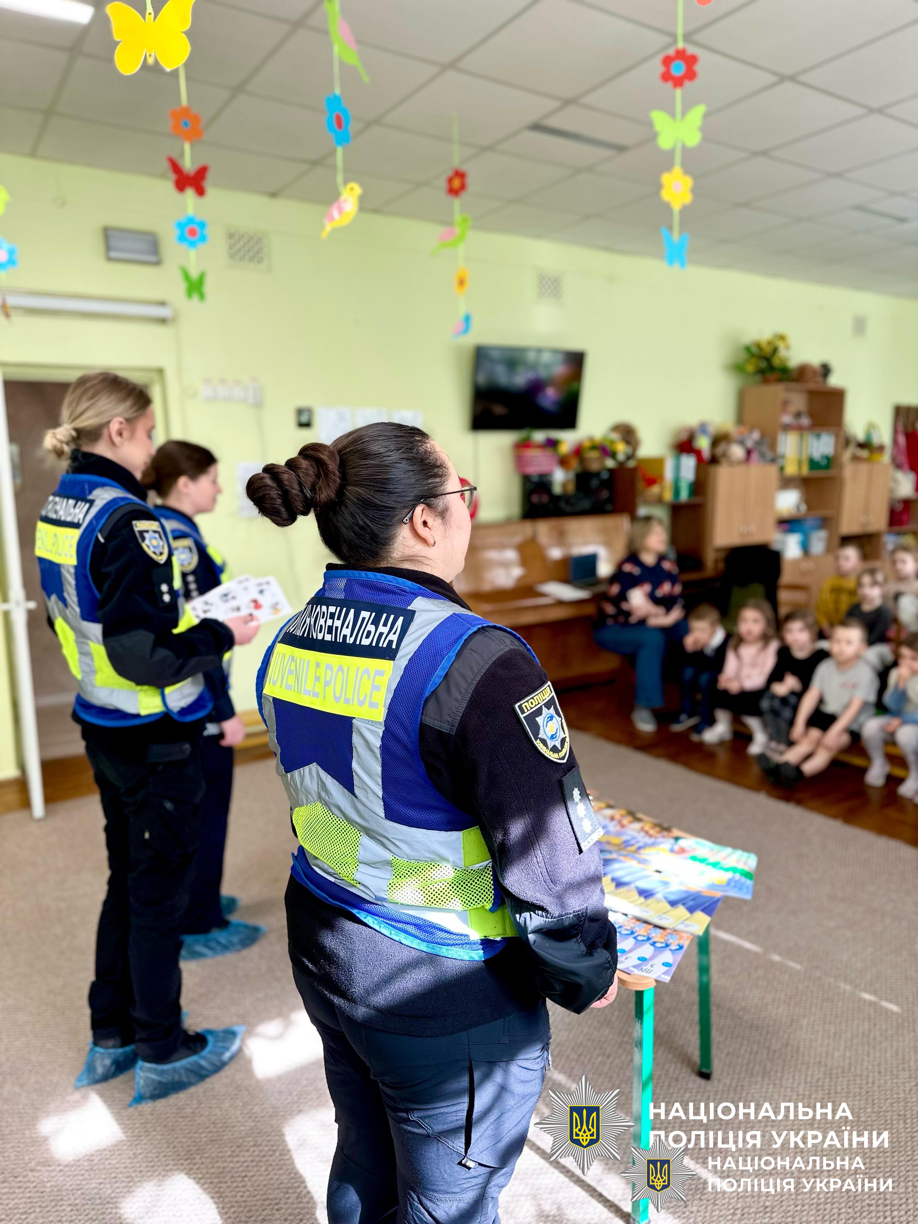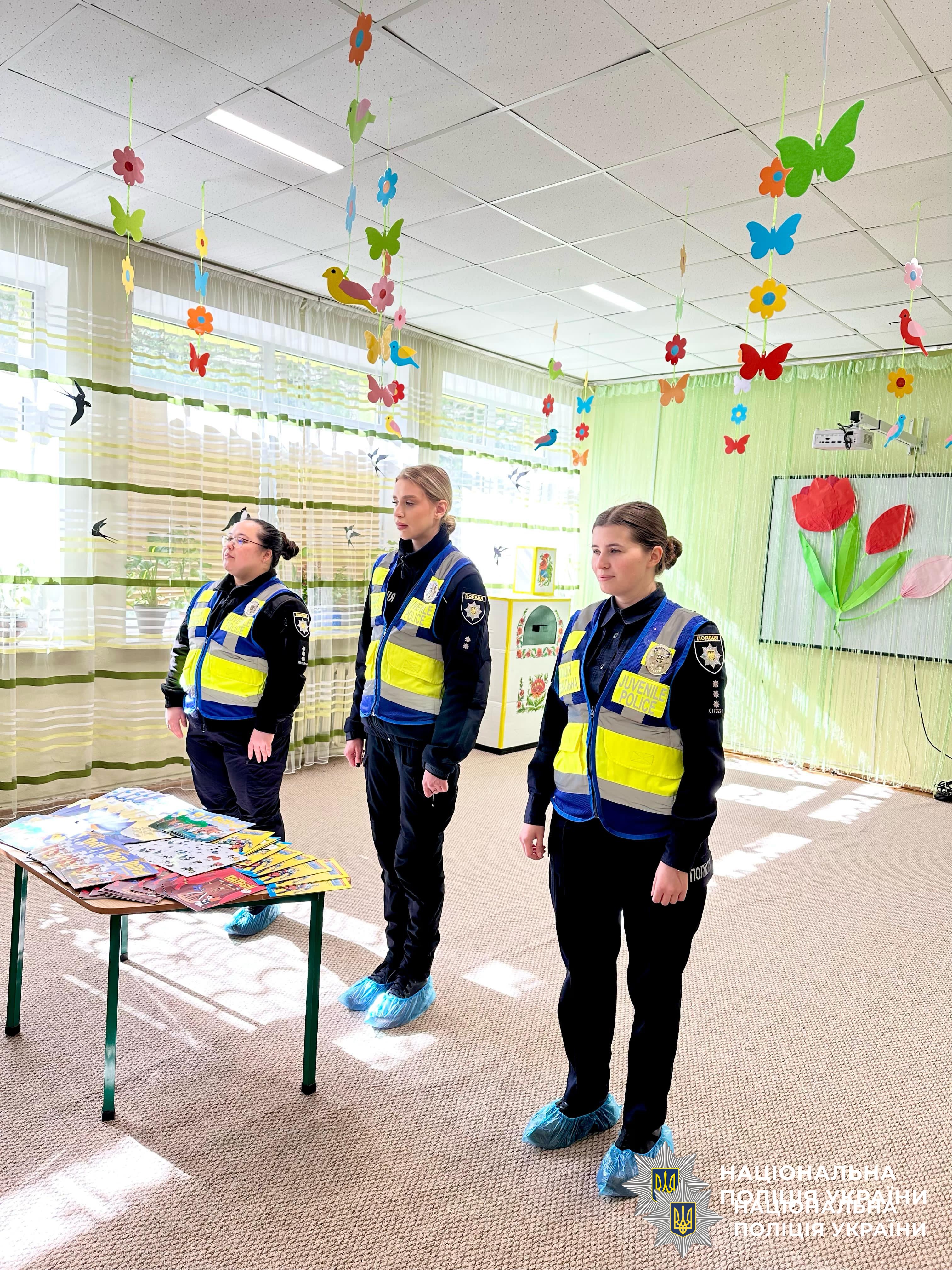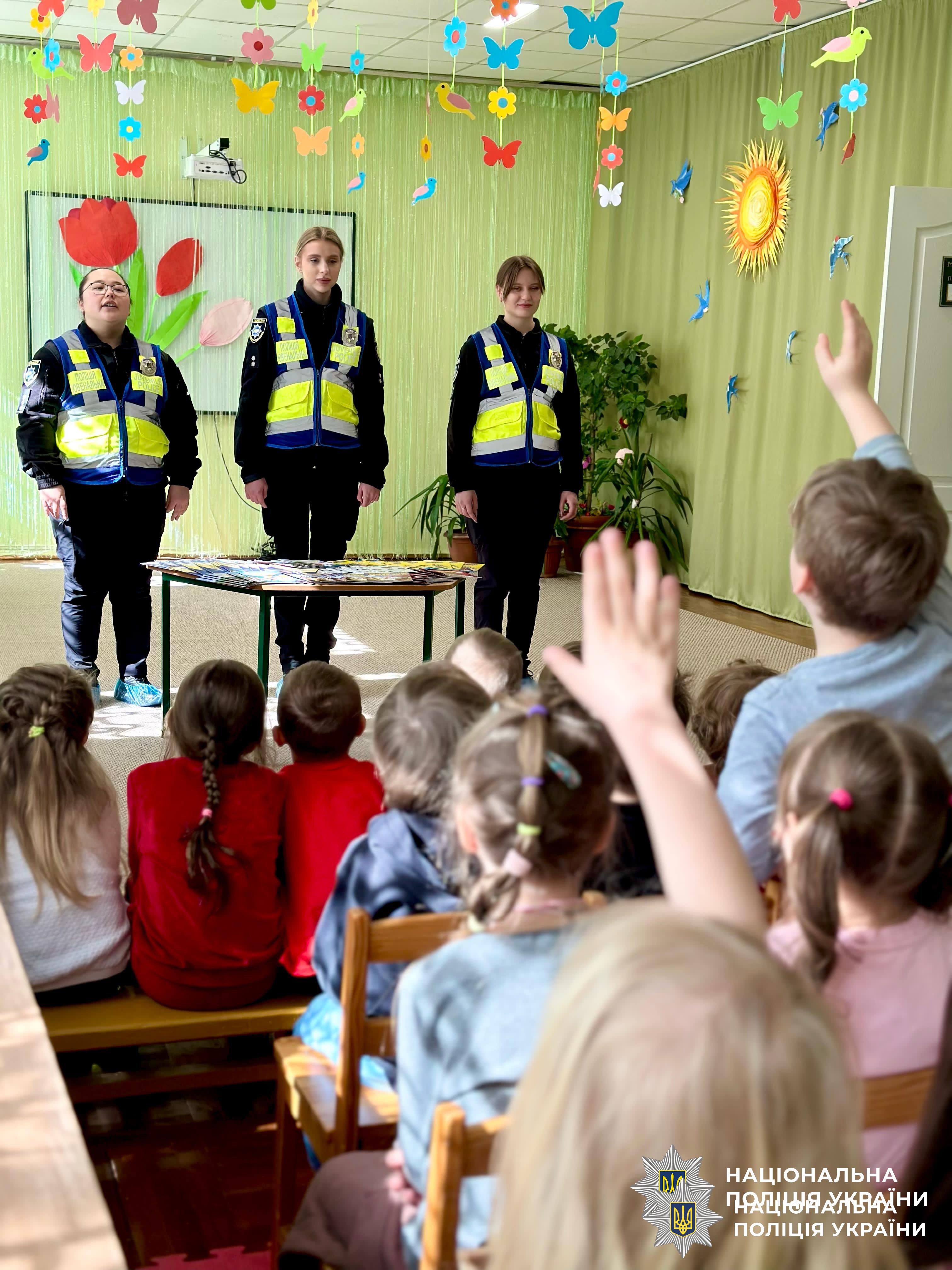 Правоохоронці розповіли дітям про важливість правил дорожнього руху, безпечну поведінку за межами дитсадка та основні правила безпеки для дітей. Малеча дізналася, як правильно переходити дорогу, кого можна просити про допомогу та як уникати небезпечних ситуацій.