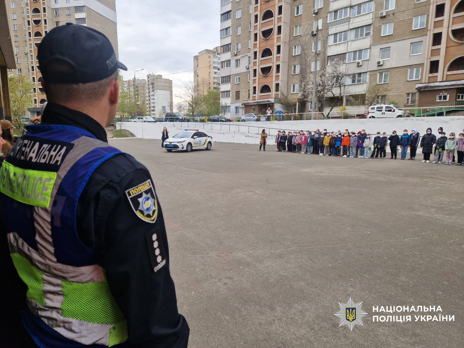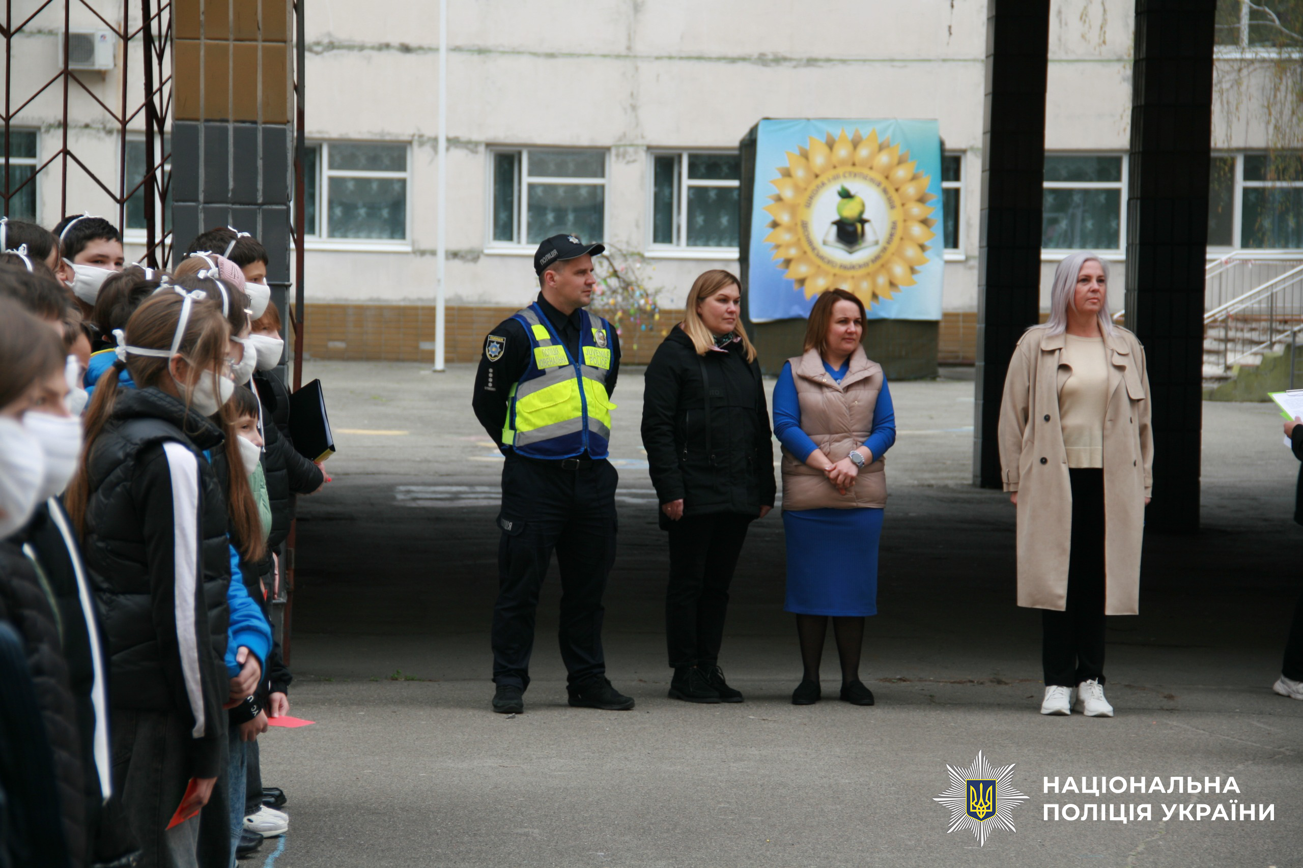 Заняття відбулося на подвір’ї навчального закладу, де діти змогли не лише почути важливу інформацію, а й відпрацювати базові навички безпечної поведінки. Правоохоронці та фахівці ДСНС у доступній формі нагадали школярам правила безпечної поведінки на дорозі, в побуті та алгоритм дій у разі надзвичайних ситуацій.