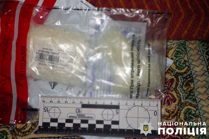 Слідчі вилучили у 21-річного броварчанина 300 пакетиків з психотропною речовиною «Альфа-PVP». Його затримали дільничні офіцери поліції Деснянського району у під’їзді багатоповерхівки.
