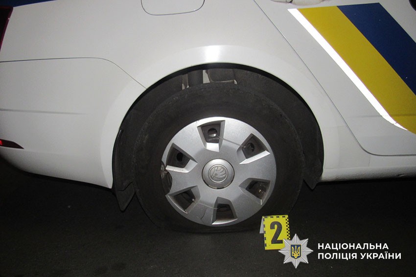 Подія відбулась днями в Печерському районі столиці. Поки наряд співробітників Управління поліції охорони відпрацьовував виклик щодо порушення тиші у вечірній час, невідомі порізали колеса їх службового автомобіля.
