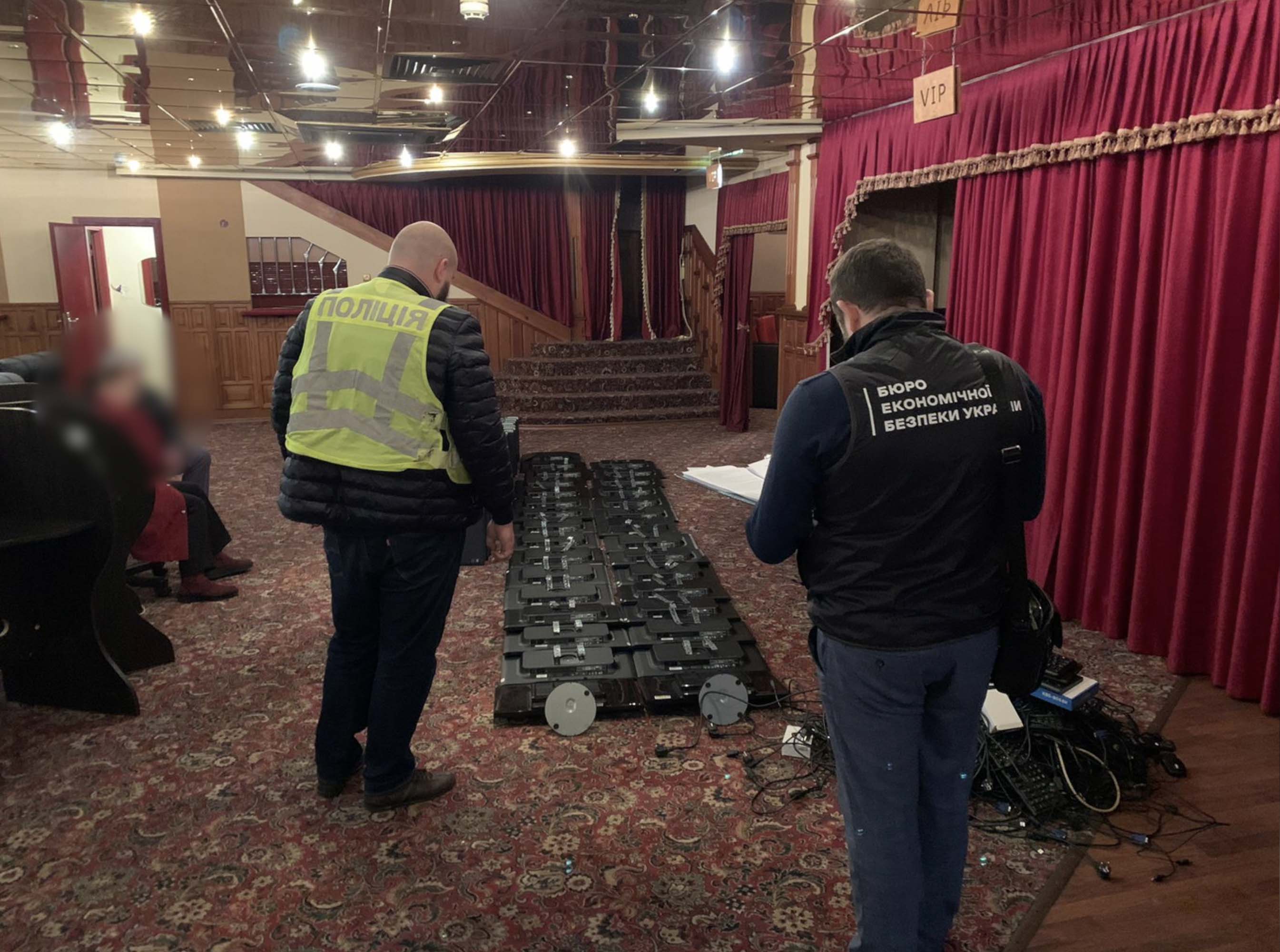 Правоохоронці за силової підтримки полку поліції особливого призначення провели 20 обшуків в ігрових залах та за місяцями проживання фігурантів. Вилучили 135 системних блоків, монітори, камери відеоспостереження, роутери, спеціальні сервери та чорнові записи.