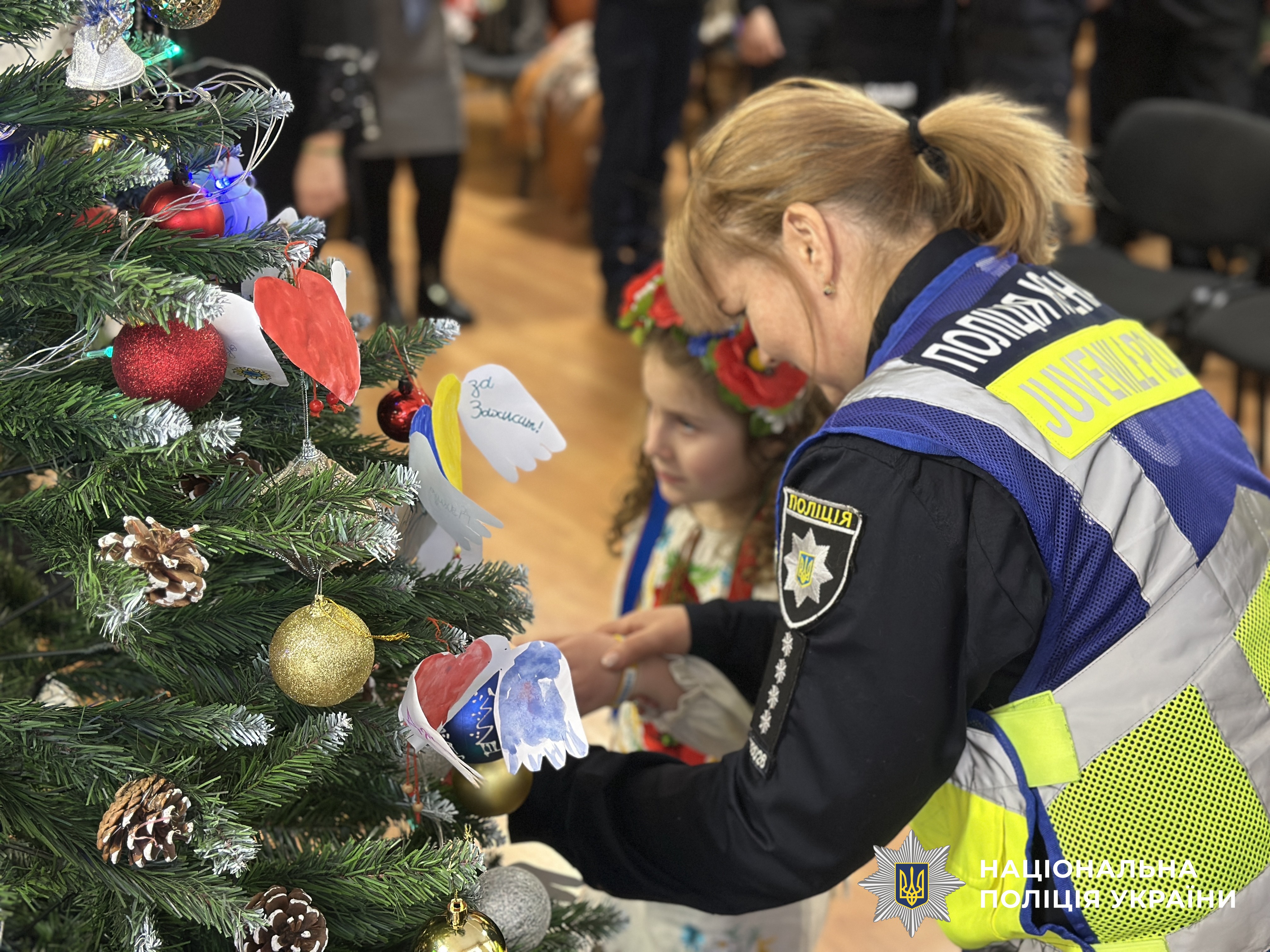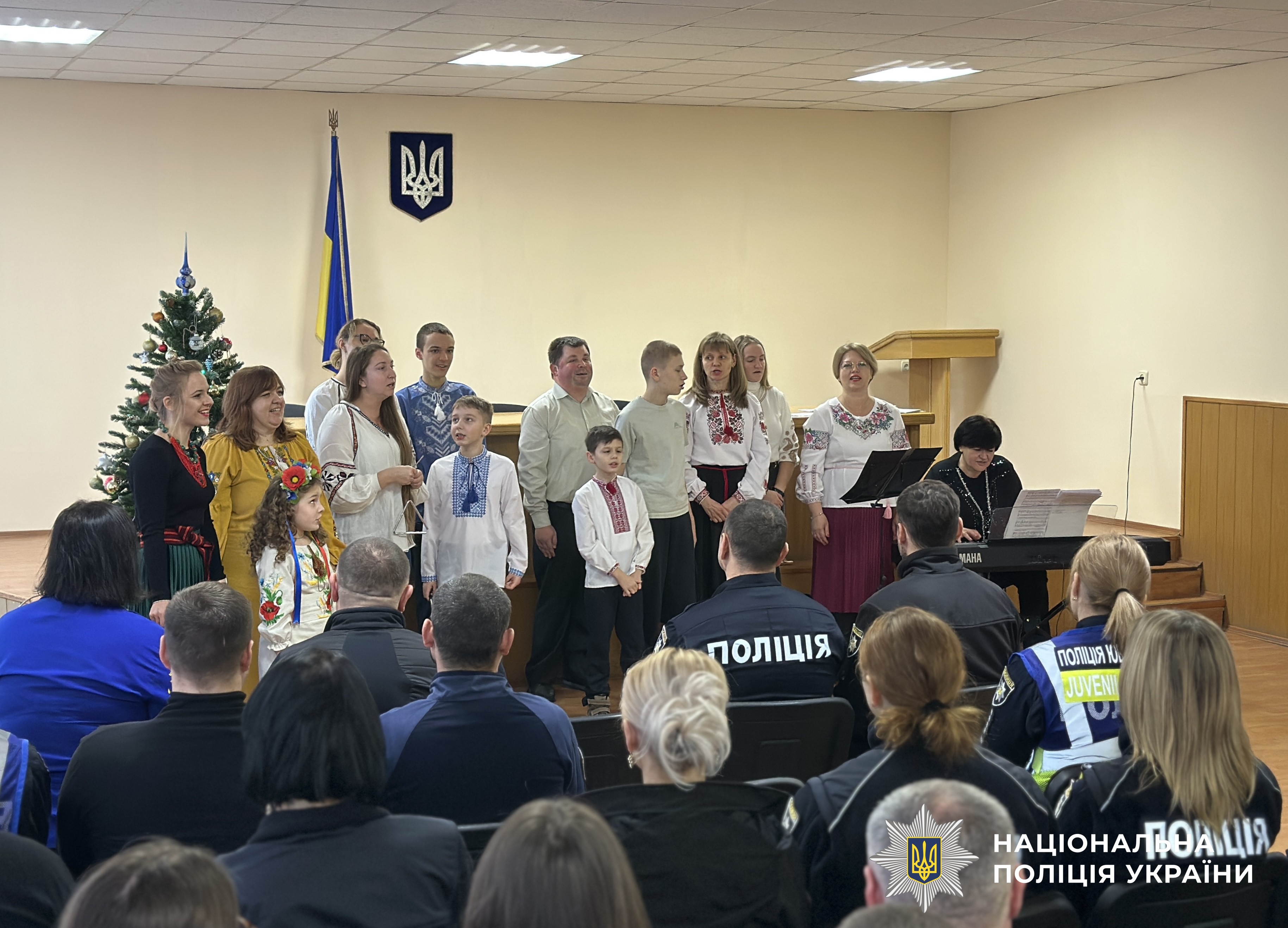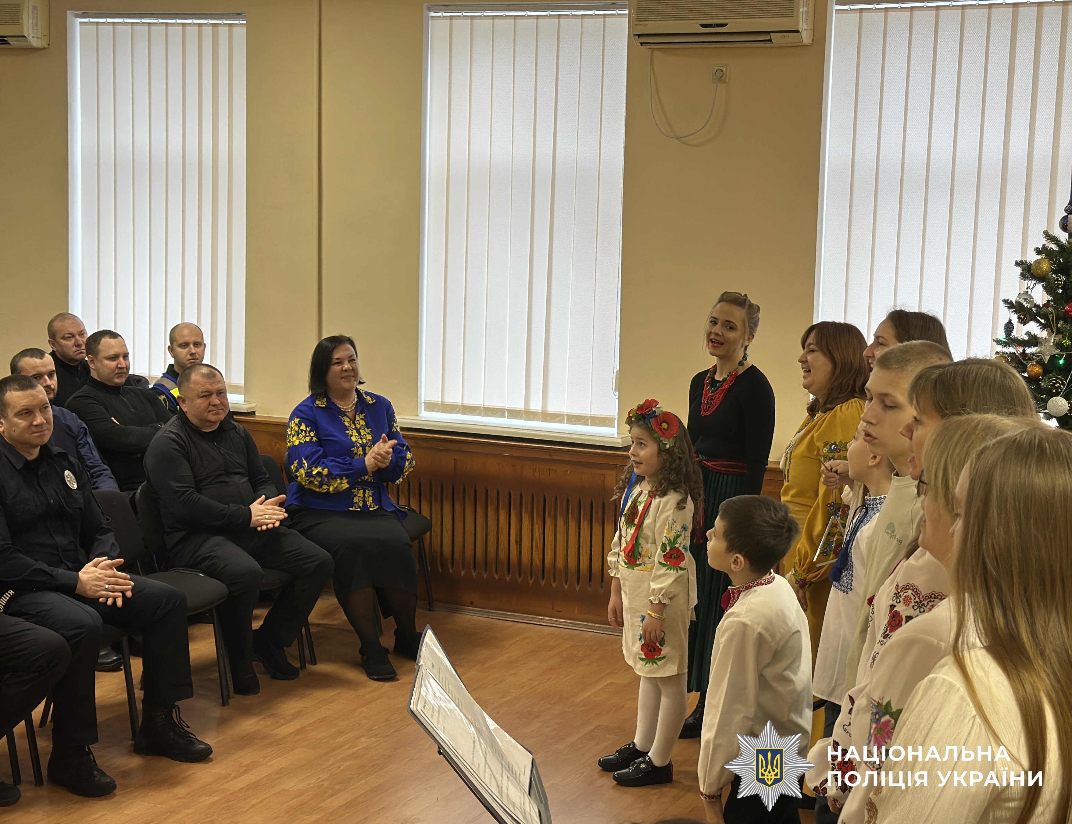 Дітлахи підготували для охоронців порядку святкову програму. Талановита малеча співала для поліцейських Різдвяні пісні та найкращі колядки з гарними побажаннями. Також, дітки подарували правоохоронцям ялинкові іграшки - обереги, які виготовили власноруч.