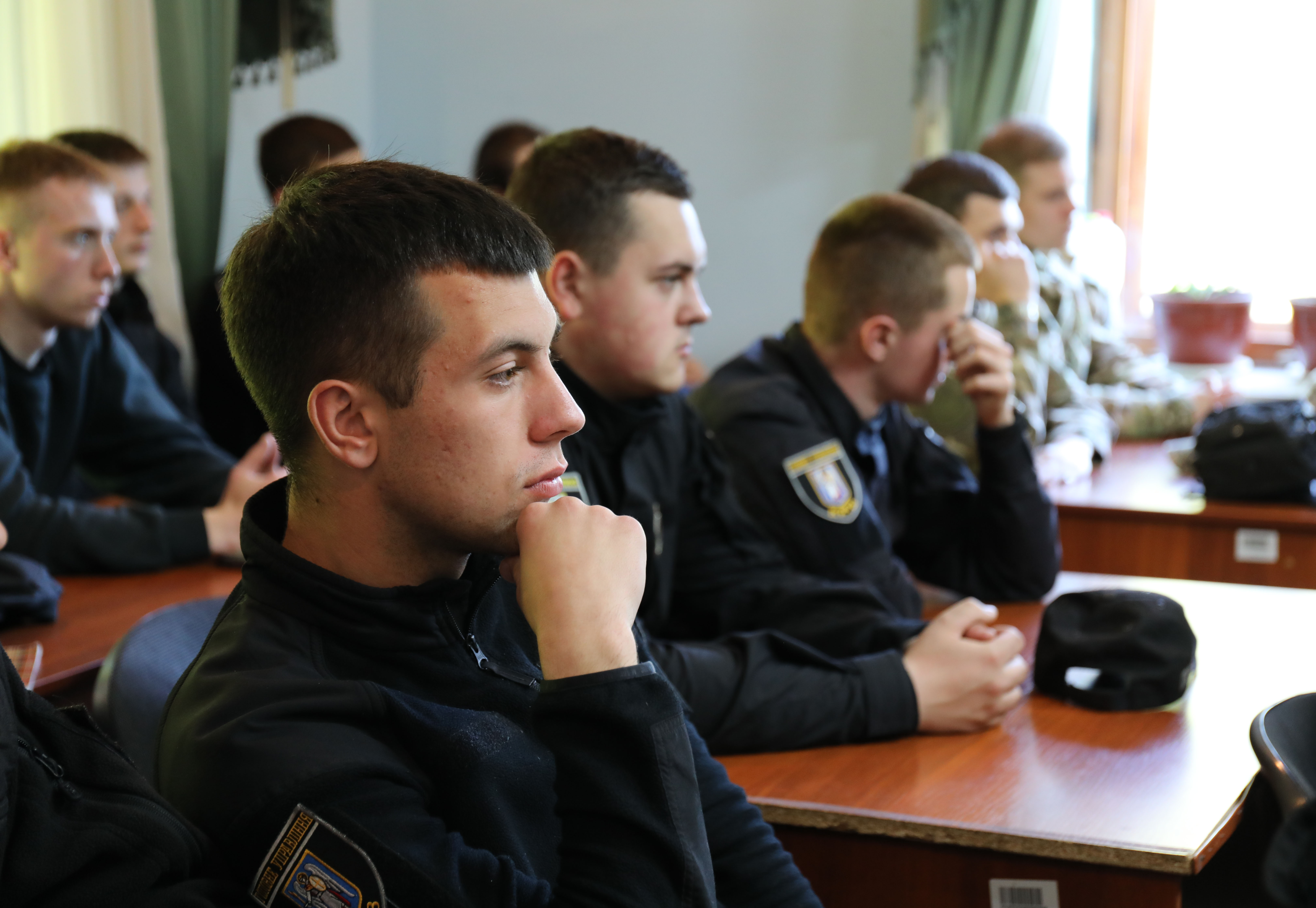 Поліцейські розповіли молоді про особливості несення служби в умовах війни, важливість постійно навчатися та вдосконалюватися. Особливо випускників вразили реальні історії з роботи спецпризначенців, коли ті рятували побратимів з-під обстрілів у найгарячіших точках. Також розповіли про героїчні вчинки своїх побратимів, які загинули при виконанні службових обов’язків під час війни. «Ті знання, які ми здобули під час навчання та роботи у поліції – не раз рятували нам життя. Служба загартовує та навчає швидко приймати рішення в екстремальних та критичних ситуаціях. Тут усі побратими - єдиний міцний кулак, який нищить ворога. Ми не боїмося ризикувати, бо захищаємо рідну землю. Але як тільки є можливість пройти ще раз курс медицини чи тактики, до прикладу, не пропускаємо та вдосконалюємось. Бо це також наша впевненість у власних силах», - розповіли спецпризначенці.