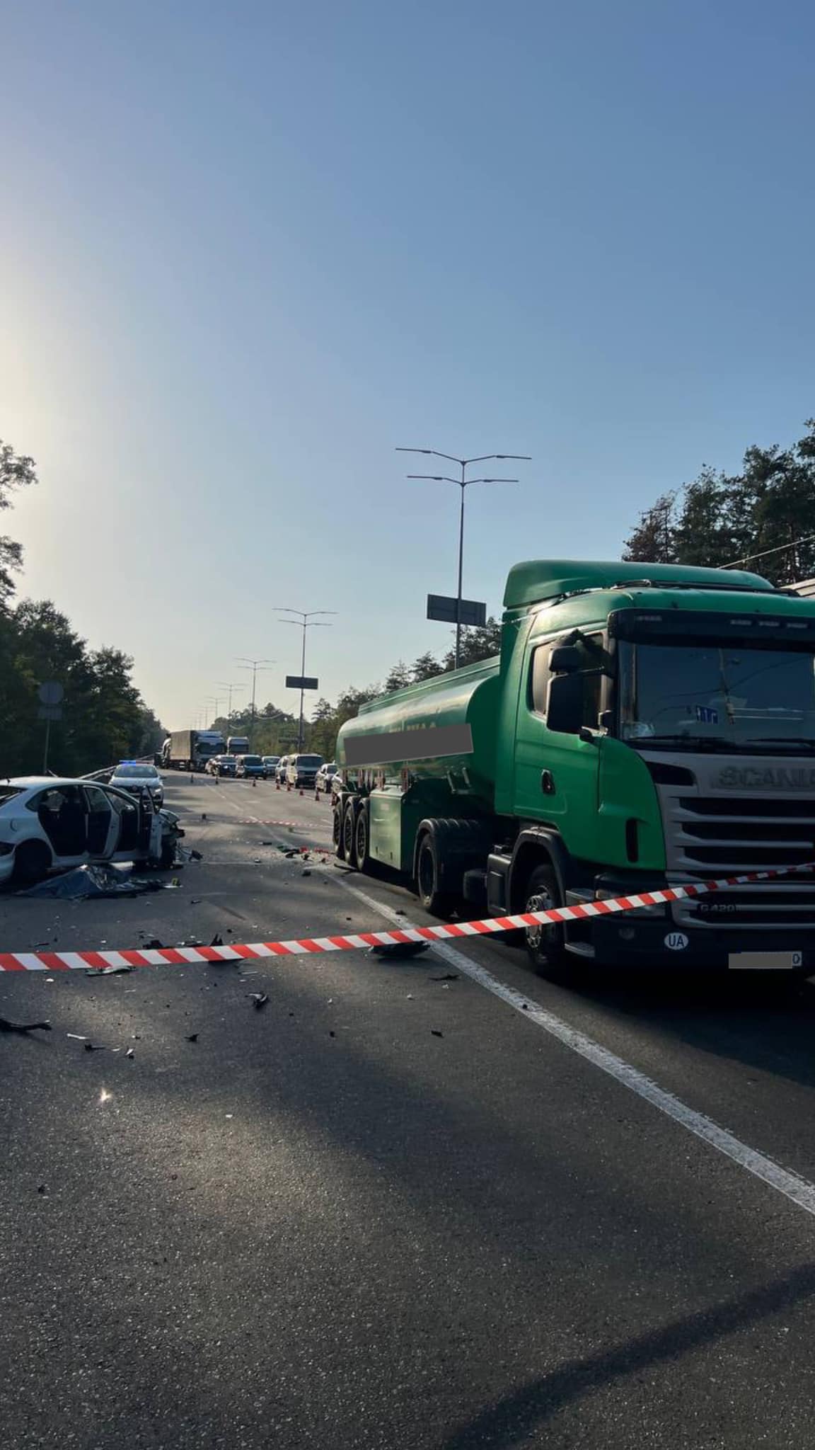 Попередньо встановлено, що водій служби таксі, 1976 року народження, рухаючись в напрямку Литовського проспекту та наближаючись до перехрестя, здійснив зіткнення з автомобілем «Кіа», після чого вʼїхав у великогабаритний транспортний засіб з напівпричепом «Сканія», який зупинився на червоний сигнал світлофора.