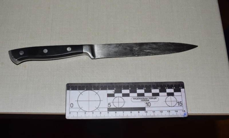 Як розповів начальник Оболонського управління поліції Віктор Михайленко, кухонний ніж слідчі вилучили та направили на експертне дослідження: