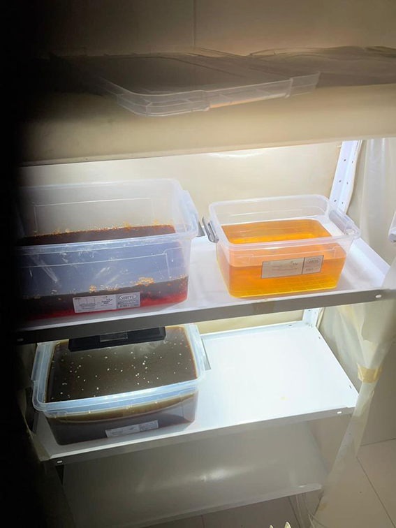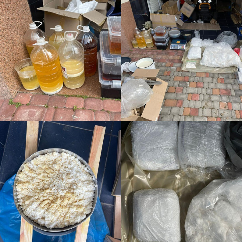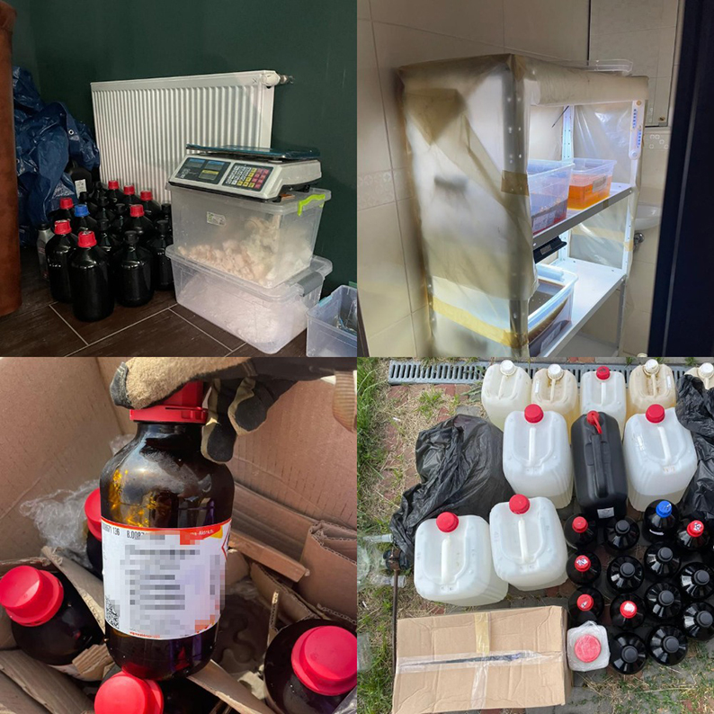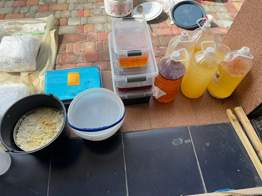 Під час проведення слідчих дій в рамках кримінального провадження, поліцейські встановили місце виготовлення та зберігання наркотику. У ході обшуків за адресою проживання наркодилерів правоохоронці виявили спеціально обладнані приміщення з холодильниками для зберігання вже готового «товару», колби з прекурсорами та реактивами, пластикові ємності з рідинами, ваги та пакувальні матеріали.