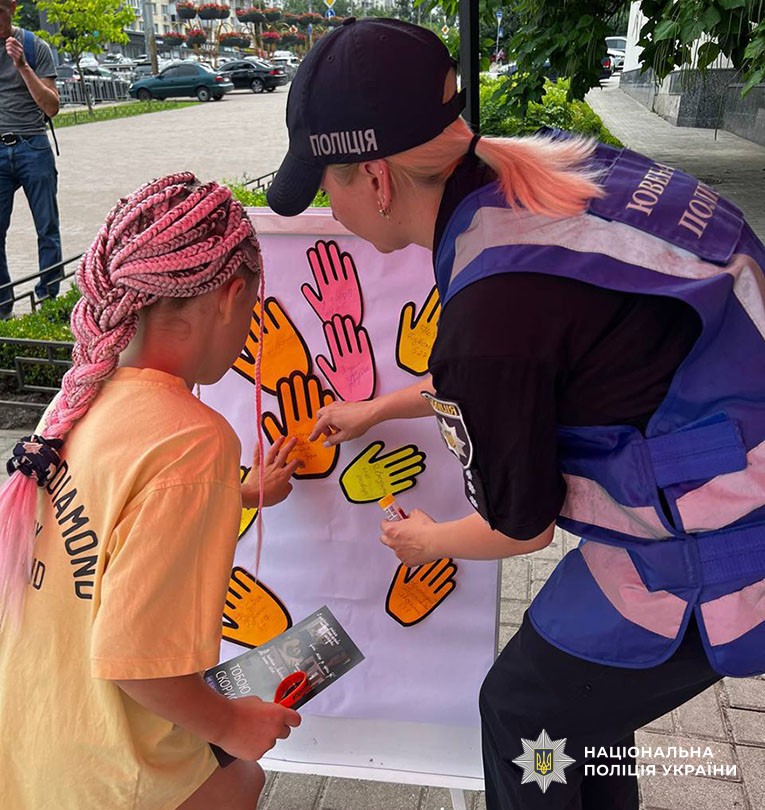 Щоб привернути увагу до проблеми ювенальні інспектори Голосіївського управління поліції спільно з працівниками служби у справах дітей та сім'ї Голосіївської у місті Києві державної адміністрації організували вуличну акцію, де поспілкувались з містянами, дітьми та їх батьками.