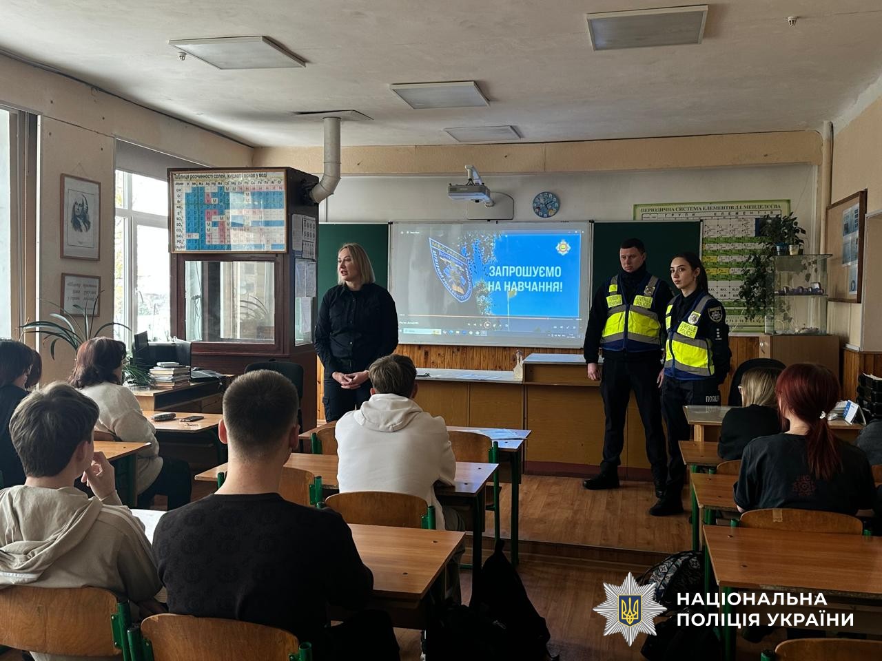 Старшокласникам розповіли про особливості навчання у вищих закладах освіти системи МВС. Молодь дізналася про вимоги до вступу, необхідні документи та можливості для розвитку, які пропонує служба в лавах Національної поліції.