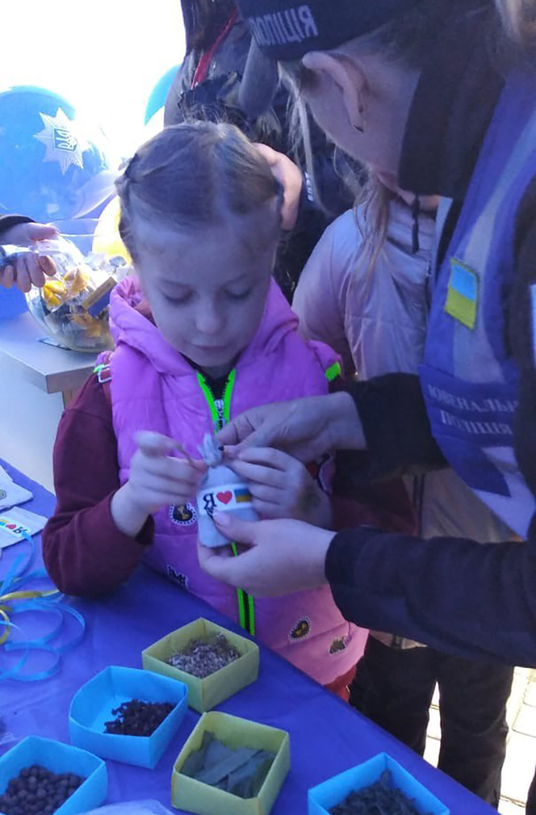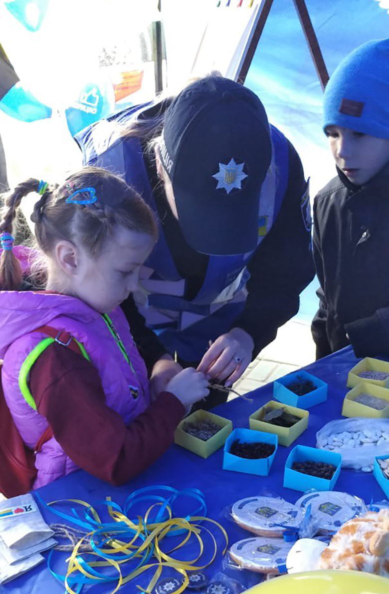 Маленькі кияни разом з поліцейськими зробили обереги для військовослужбовців