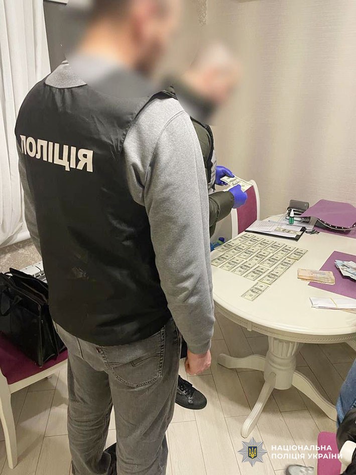 У ході проведення обшуків поліцейські вилучили грошові кошти, серед яких 2000 доларів, отриманих як перший «транш».