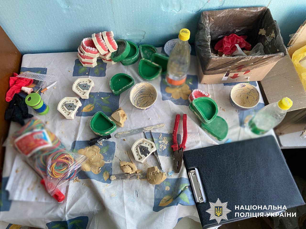 Зловмисники налагодили збут наркотиків у Києві, маскуючи їх під час доставки у стоматологічні зразки з гіпсу. Під час обшуків слідчі поліції вилучили у фігурантів близько 1,5 кг канабісу, підготовленого до збуту, та майже півтора мільйона гривень, отриманих від злочинної діяльності.