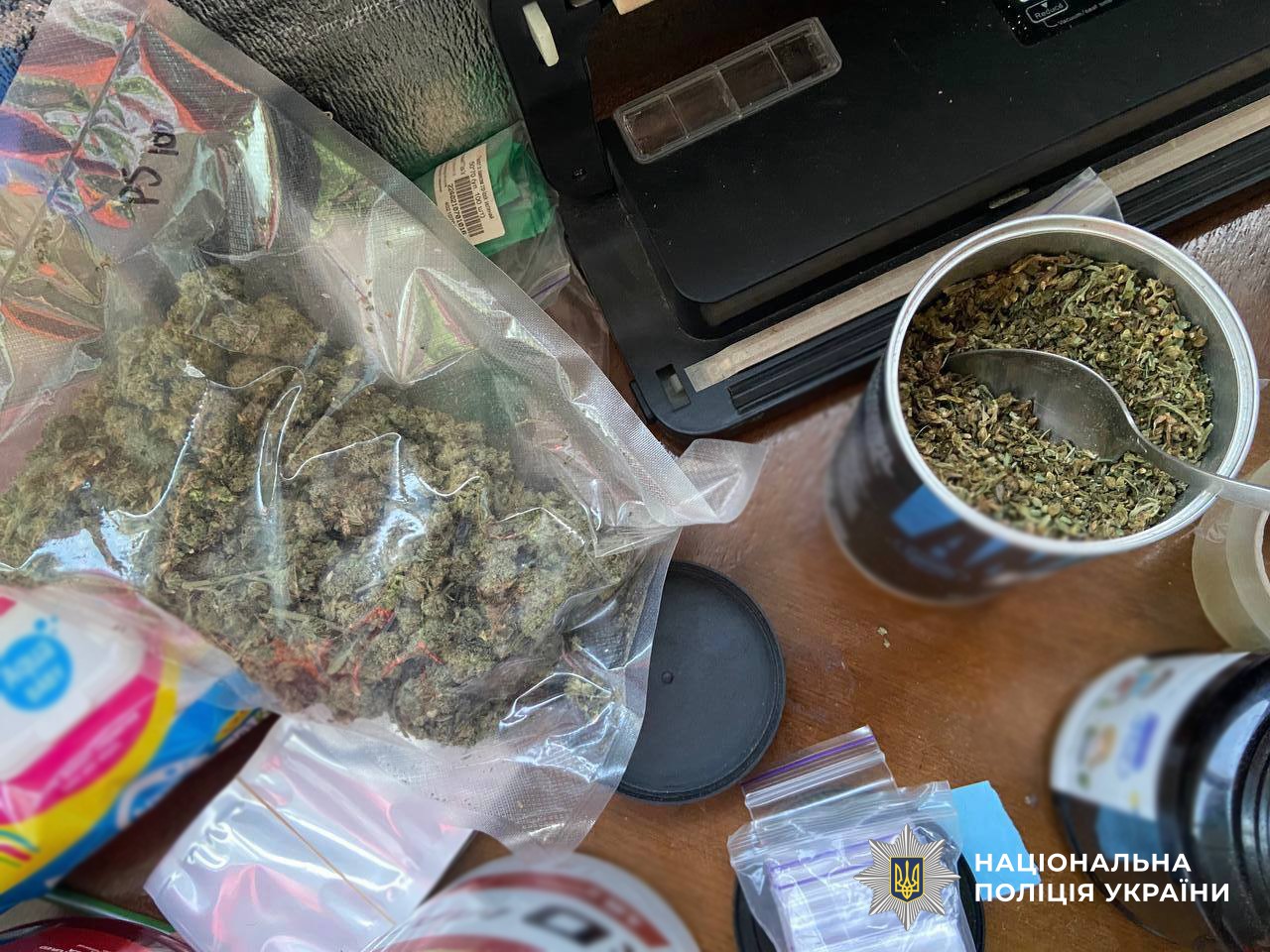 Під час обшуків за місцями проживання фігурантів слідчі вилучили понад 1,5 кг канабісу, обладнання для фасування, ваги, гроші у сумі близько півтора мільйона гривень, автомобіль, мобільні телефони, ноутбуки та чорнові записи. Правопорушників було затримано у порядку статті 208 Кримінального процесуального кодексу України.