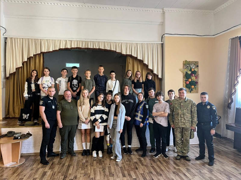 Інспектори ювенальної превенції розпочали урок з того, що наголосили про ситуації, у які можуть потрапити діти під час війни. Правоохоронці розповіли про специфіку своєї діяльності та дії екстрених служб при перевірці, ймовірно, замінованих об’єктів.