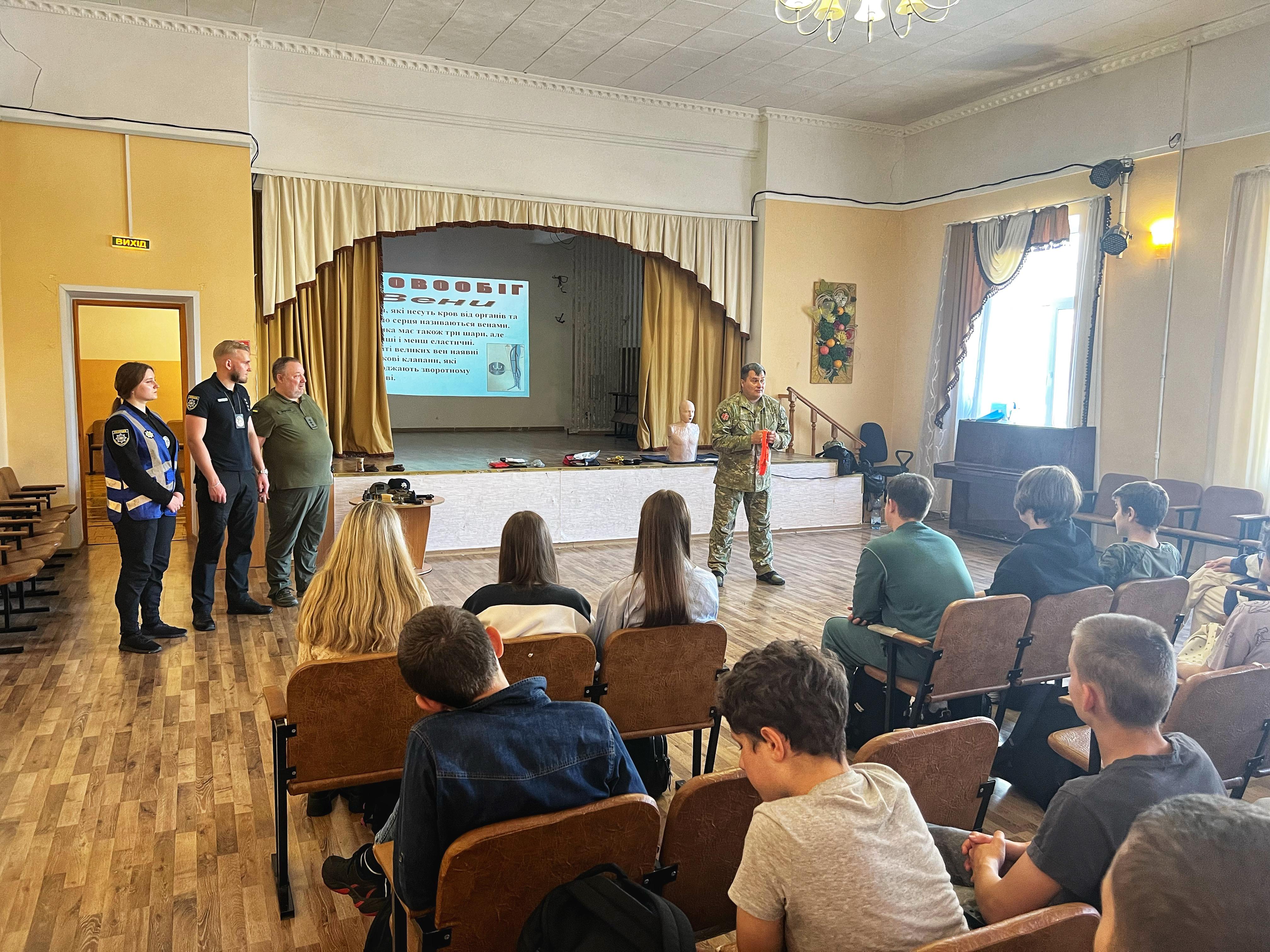 Учні дізналися, як уникати небезпеки, як діяти у разі виявлення міни чи підозрілого предмета, як реагувати на повідомлення про замінування, а також, як правильно надавати першу домедичну допомогу задля збереження життя та здоров’я громадян.