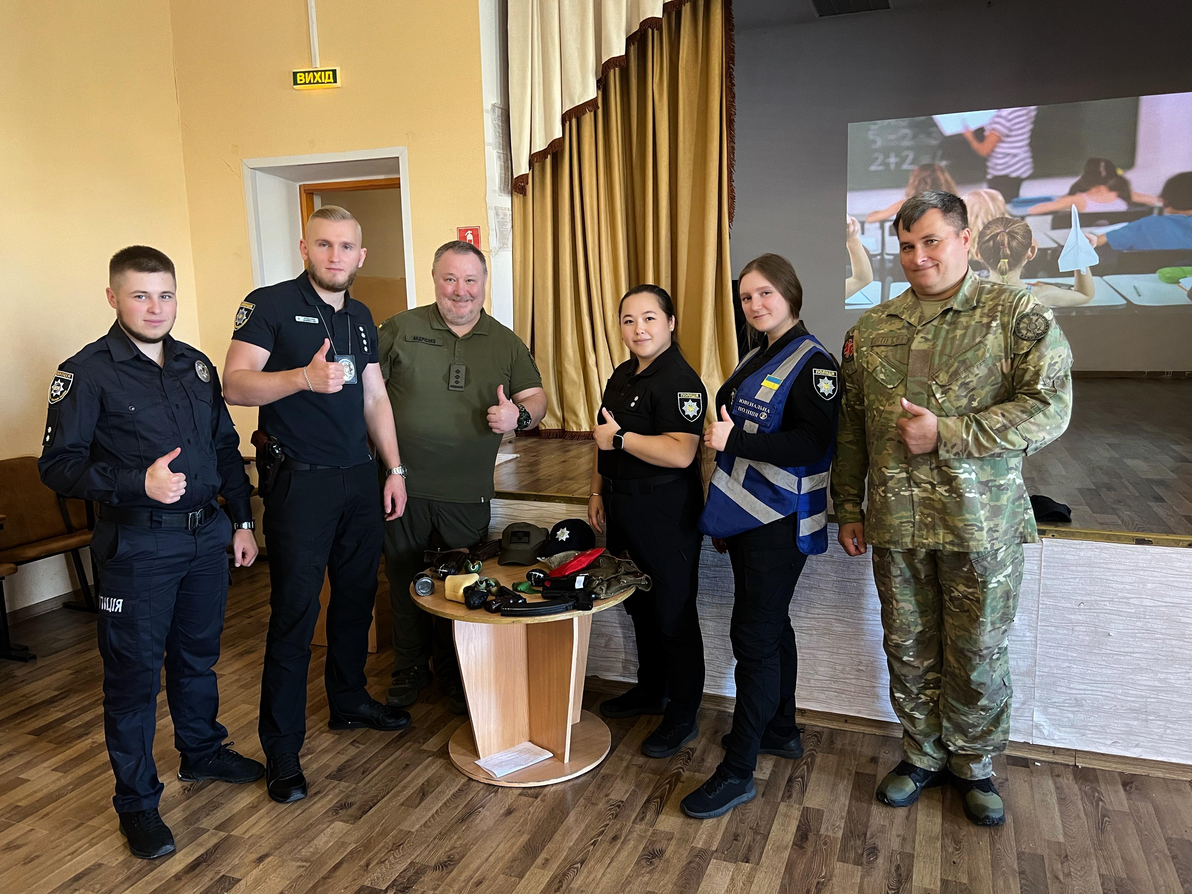 Інтерактивний урок з мінної безпеки в одній зі столичних шкіл Печерського району провели ювенальні поліцейські спільно із членами Об’єднаного громадського формування України з охорони громадського порядку і державного кордону.