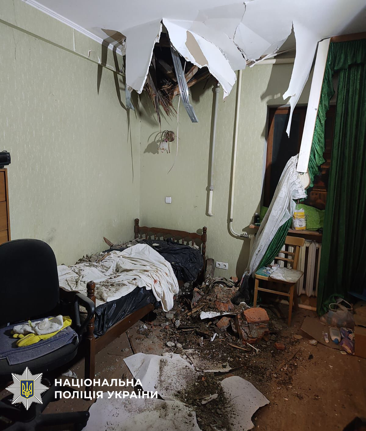 У Дніпровському районі уламки безпілотника влучили у житловий п’ятиповерховий будинок, а також зафіксовано падіння уламків поблизу магазину.