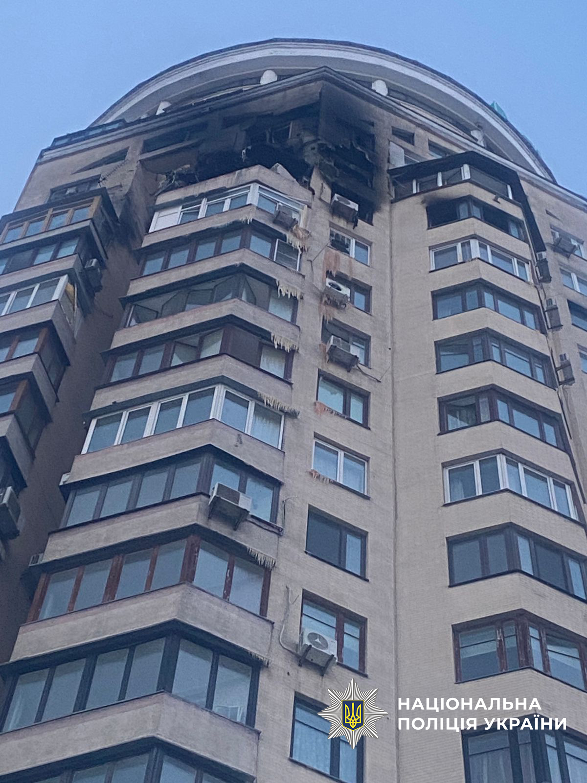 Наслідки ворожої атаки на Київ: троє потерпілих, поліція документує пошкодження у чотирьох районах столиці