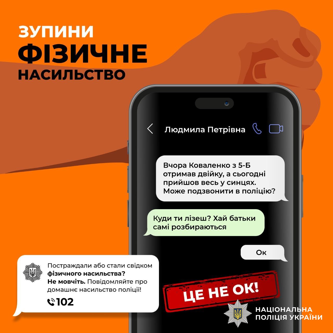 Якщо Ви постраждали від домашнього насильства або стали його свідками, не мовчіть! Телефонуйте за номером 102.