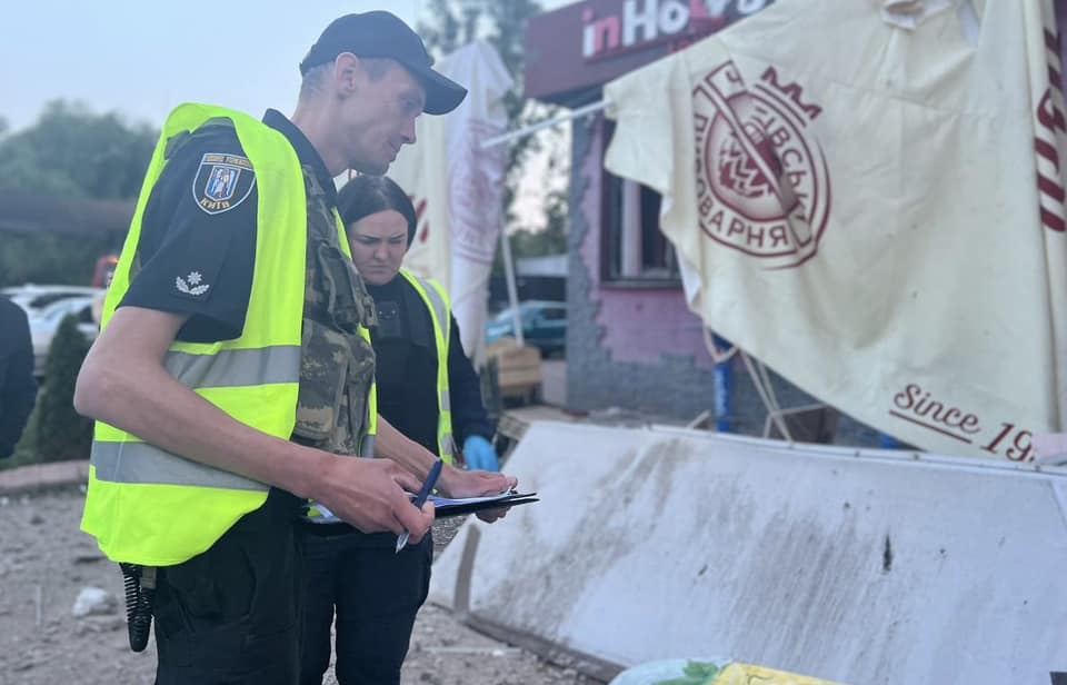 Слідчо-оперативні групи та криміналісти поліції Києва продовжують працювати на місцях та документують наслідки чергового нападу рф на місто.