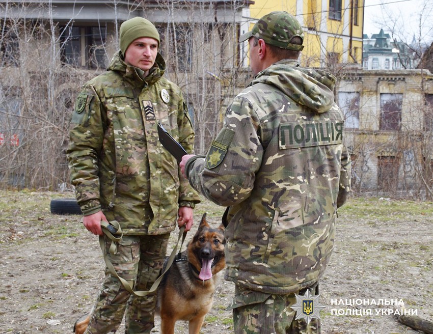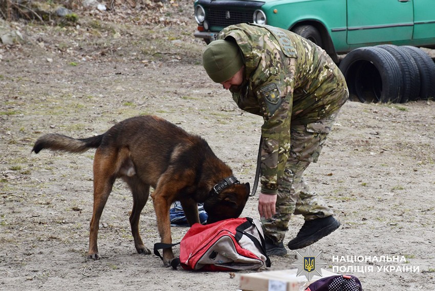 «Наразі ми перевіряємо вміння собак з пошуку вибухонебезпечних предметів, для чого заздалегідь підготували три різні локації: на місцевості, в багажі та у транспортних засобах. На роботу виділяється від чотирьох до шести хвилин, в залежності від рівня навченості собаки та складності самого завдання. Коли собака знайшла за комплексним запахом потрібний предмет, вона своєю поведінкою – сигнальною позою – повідомляє про це кінолога. Завдання можемо рахувати виконаним».