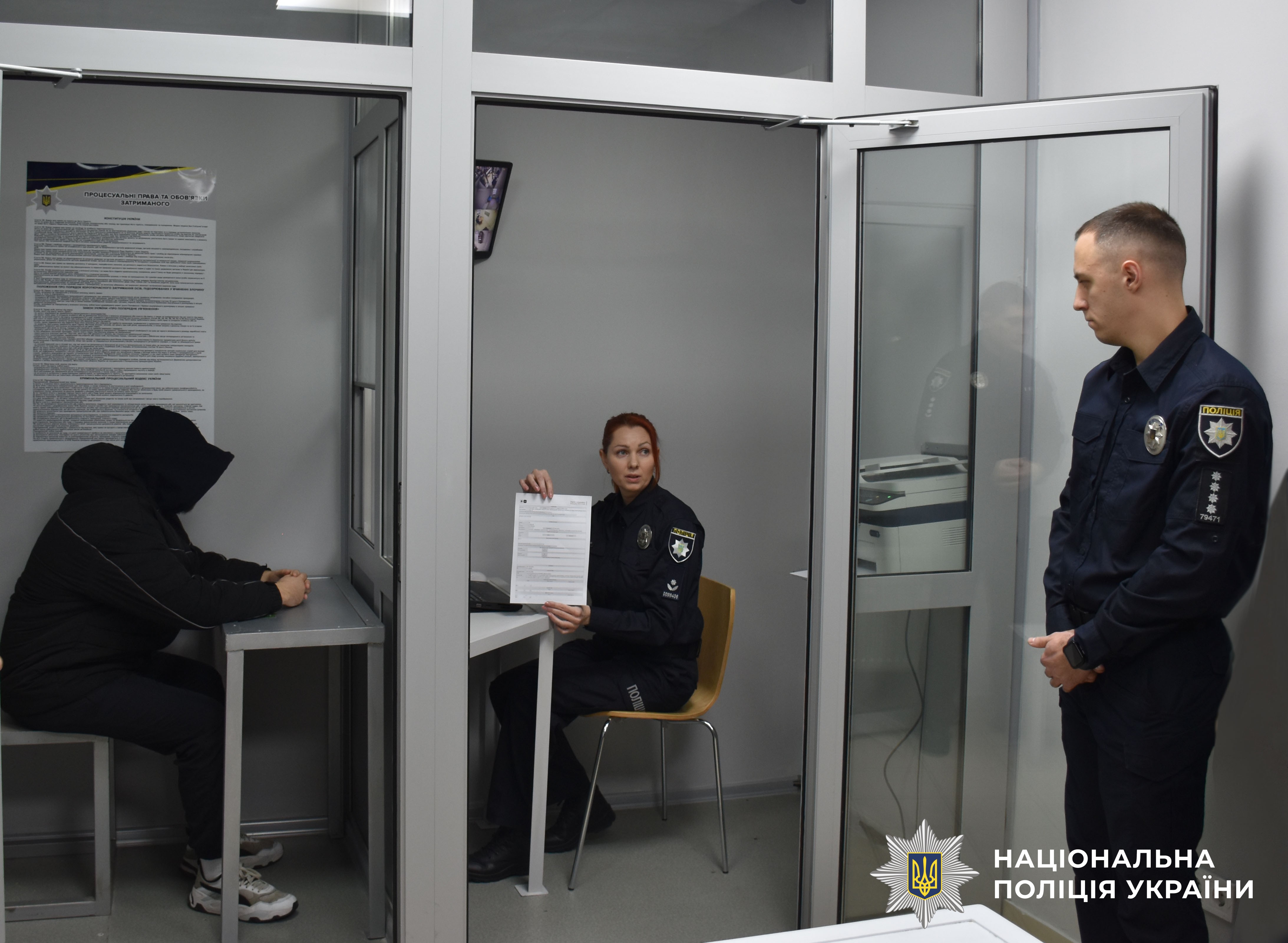 Під час відкриття присутнім продемонстрували спеціально обладнані приміщення для затриманих та під час змодельованого сценарію відтворили весь етап затримання й доставлення особи, яка вчинила кримінальне правопорушення: від інтерв’ювання до поміщення в кімнату для затриманих.