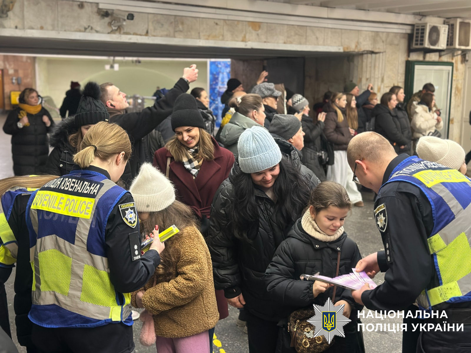 Окрему увагу під час заходу правоохоронці приділили дітям. Ювенальні інспектори главку поліції та управління поліції в метрополітені поспілкувалися з наймолодшими пасажирами та вручили їм корисні подарунки – флікери та лінійки з пізнавальною інформацією, що допоможе малечі бути помітнішою в темну пору доби на вулиці.