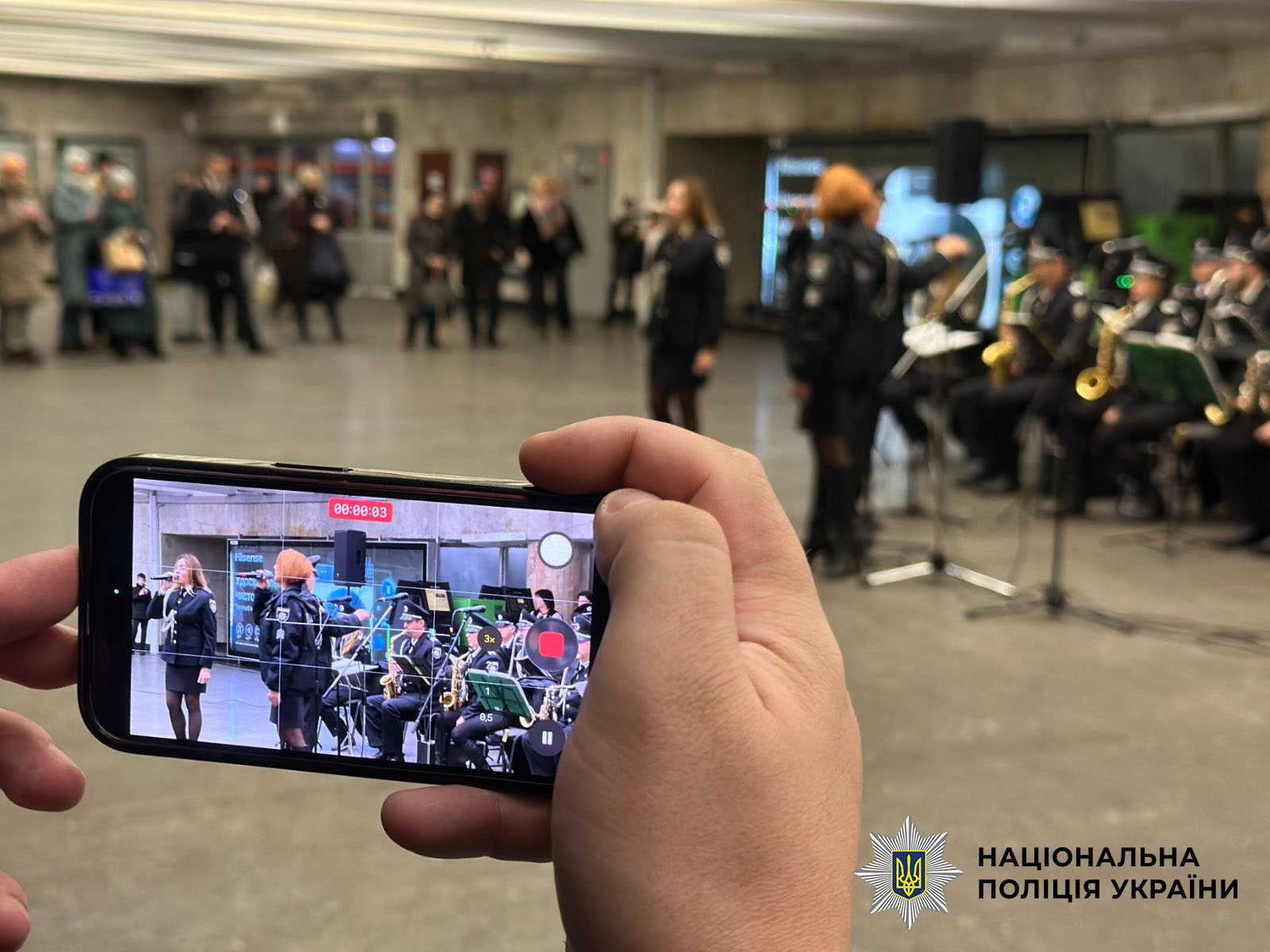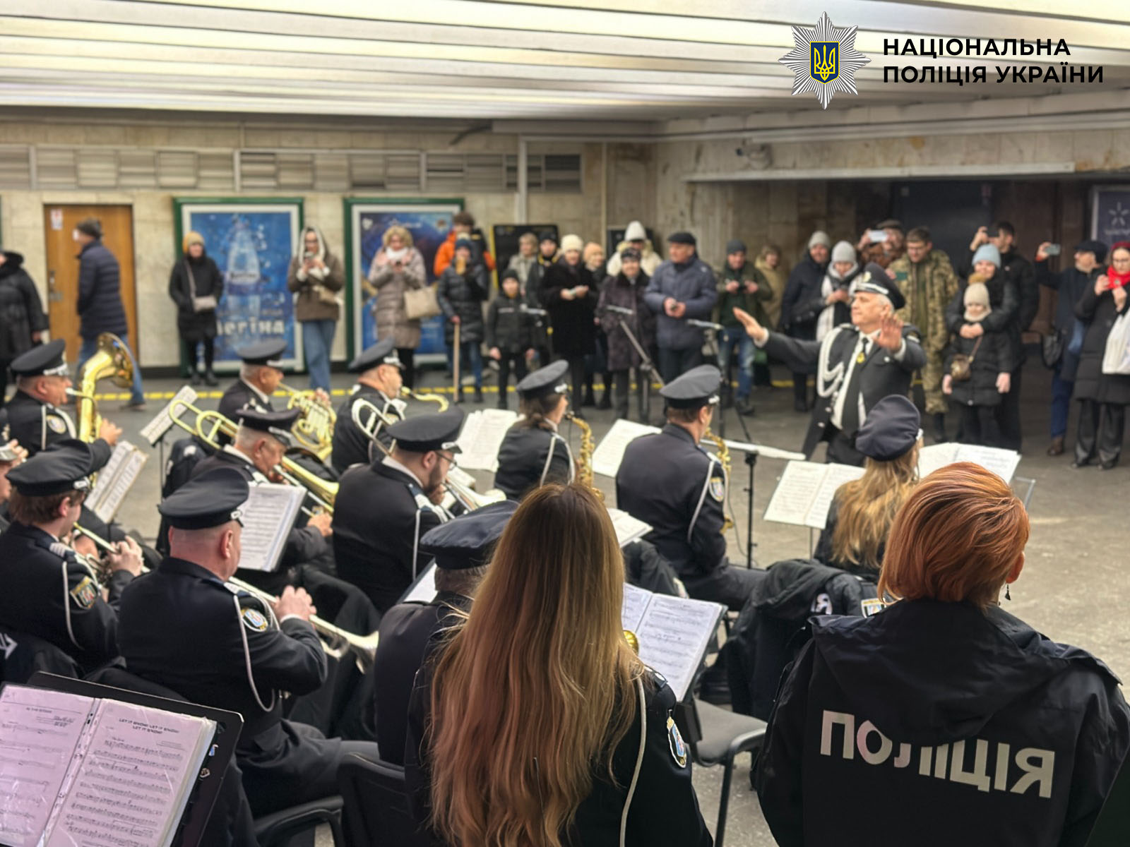 З нагоди різдвяних та новорічних свят поліцейський оркестр ГУНП у м. Києві подарував справжню музичну подію відвідувачам станції метро «Майдан Незалежності». Жива музика наповнила підземний простір атмосферою тепла, радості та святкового настрою.