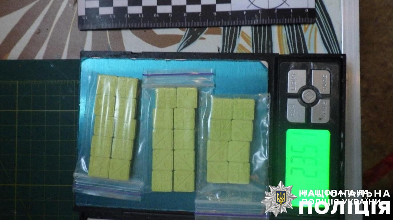 Під час обшуку в його помешканні правоохоронці вилучили партії канабісу, «Альфа-PVP», пігулки МДМА та екстазі, а також псилоцибінові гриби. Зловмисник фасував заборонені речовини в упаковки з печивом й відправляв їх замовникам поштою.