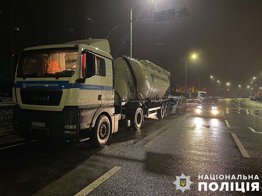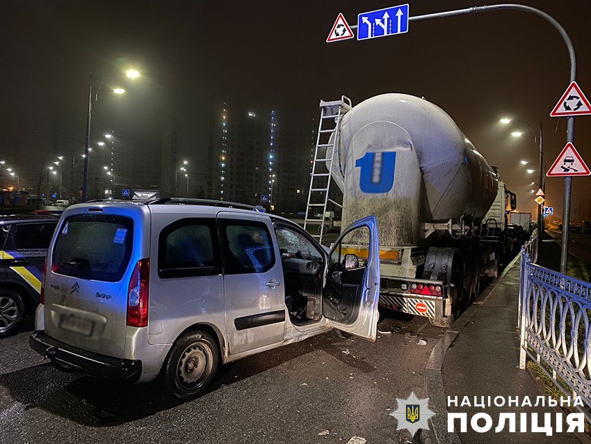 Поліцейські встановили, що 36-річний водій автомобіля «Citroen» здійснив наїзд на припаркований на узбіччі дороги вантажний автомобіль із автоцистерною. Внаслідок зіткнення 24-річний пасажир, який сидів на передньому сидінні, отримав тілесні ушкодження у вигляді переломів кісток ліктя, саден голови та був госпіталізований.