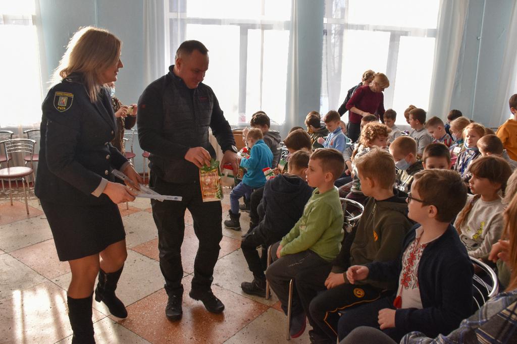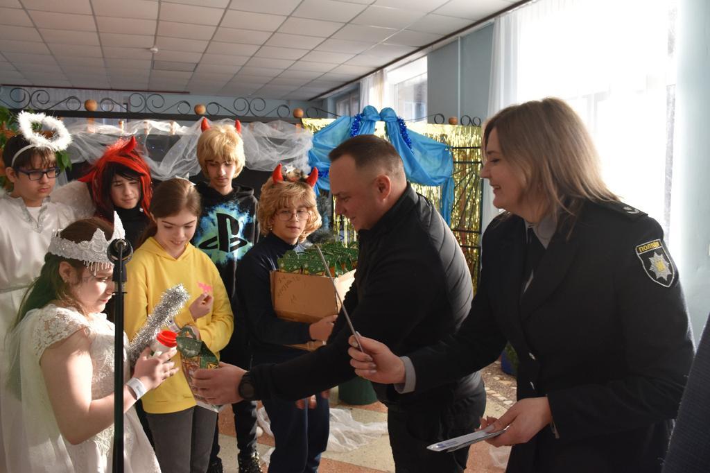 Дітки підготували для поліцейських святкову виставу з піснями та віршами. Правоохоронці по завершенню заходу подарували мелечі солодкі подарунки, світловідбивні аксесуари та ліхтарики.