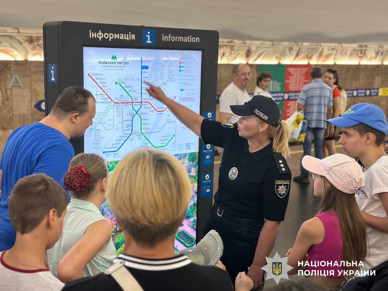 маршових сходах та ескалаторі. Не забули правоохоронці розказати вихованцям підшефного закладу і про історію створення та таємниці деяких з станцій київської підземки.