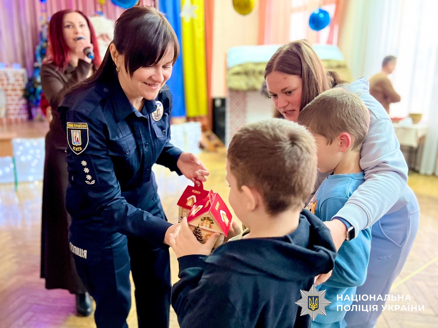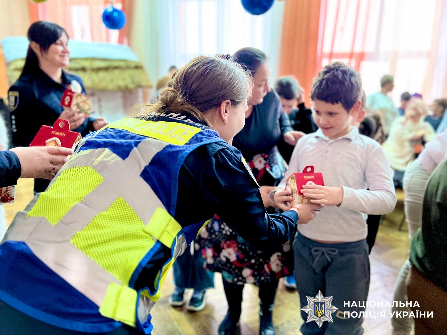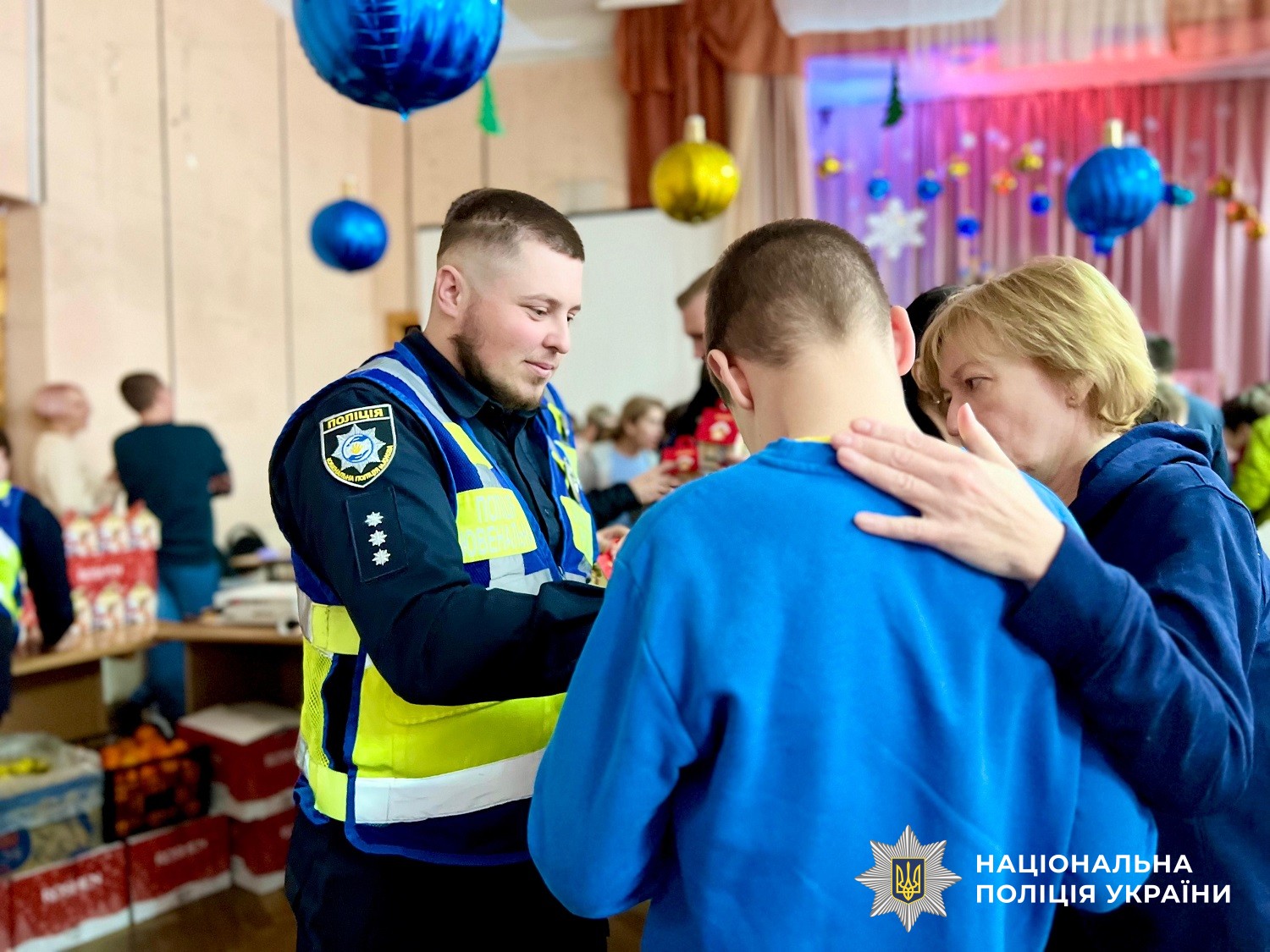 Поліцейські передали хлопцям та дівчатам фрукти й солодощі, побажали міцного здоров’я, сил і натхнення у новому році, а також із задоволенням переглянули святковий концерт, який підготували діти.
