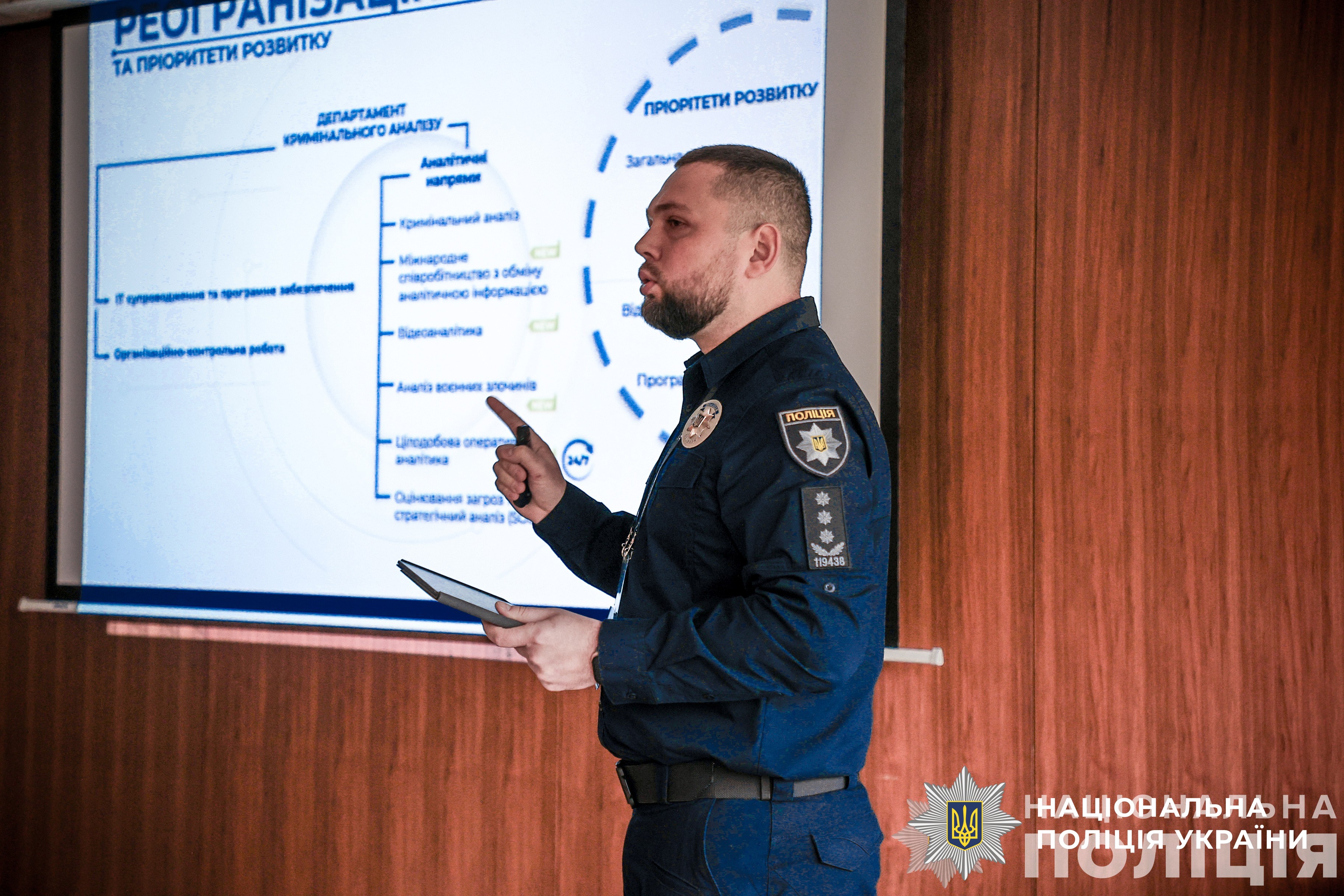Крім того, під час дводенного хакатону для учасників проводились лекції з профільних тем. Одним із спікерів виступив начальник Департаменту кримінального аналізу Роман Бутко з темою «Розвиток кримінального аналізу в Національній поліції України в умовах воєнного стану. Програмне рішення для відеоаналітики: відеозвіти як інструмент аналітики по воєнним злочинам».