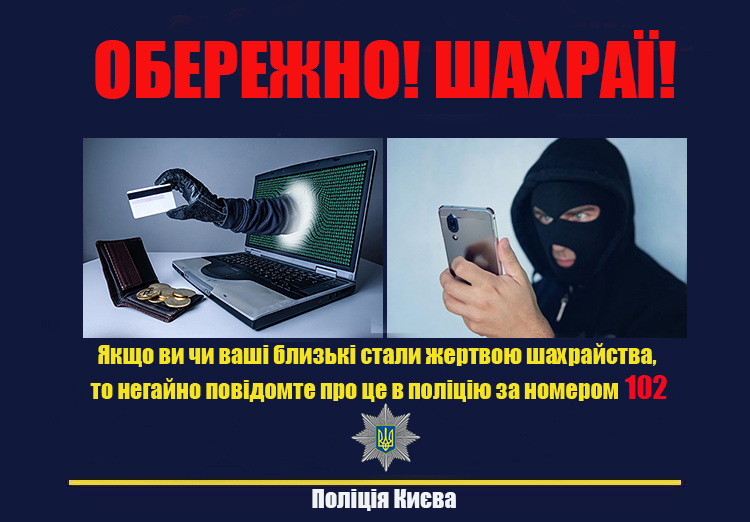 Якщо попри всі застережні заходи ви чи ваші рідні стали жертвою шахрайського злочину, негайно звертайтеся до найближчого управління поліції або зателефонуйте за номером 102.