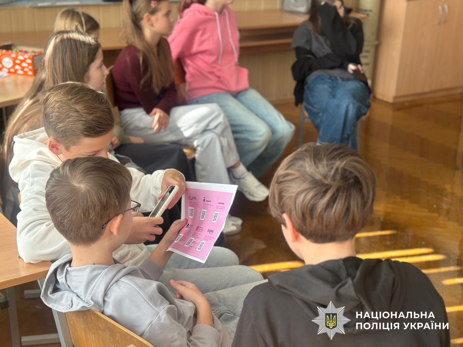 Окрему увагу інспектори приділили темі безпеки в інтернеті. Правоохоронці застерегли підлітків від спілкування з незнайомцями у соцмережах і закликали не брати участі у небезпечних челенджах, що можуть призвести до травм чи навіть загибелі. Школярам пояснили, як розпізнати маніпуляції онлайн та не піддаватися тиску.