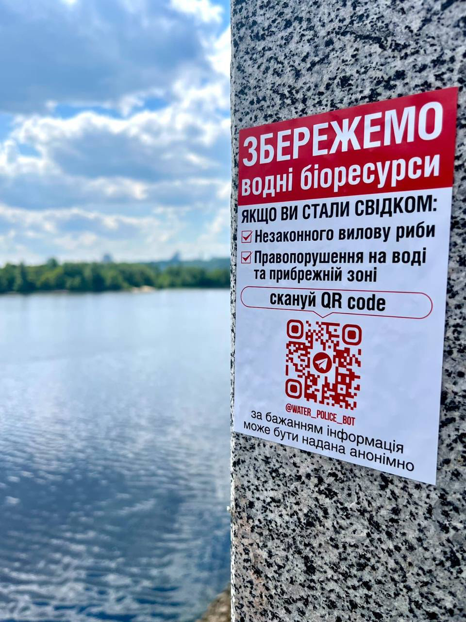 Наліпки з qr-кодом @Water_Police_bot розміщені на стоянках катерів, суднах, річкових вокзалах, прибережних територіях.