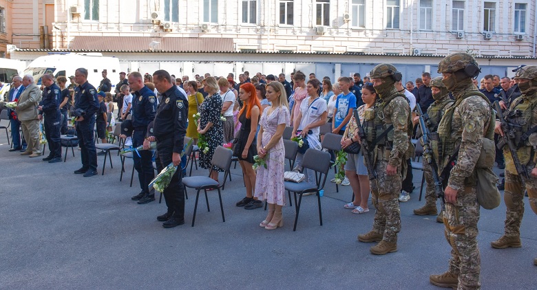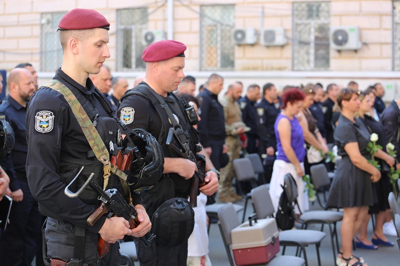 На знак вшанування світлої пам’яті загиблих воїнів правоохоронці схилили голови у хвилині мовчання.