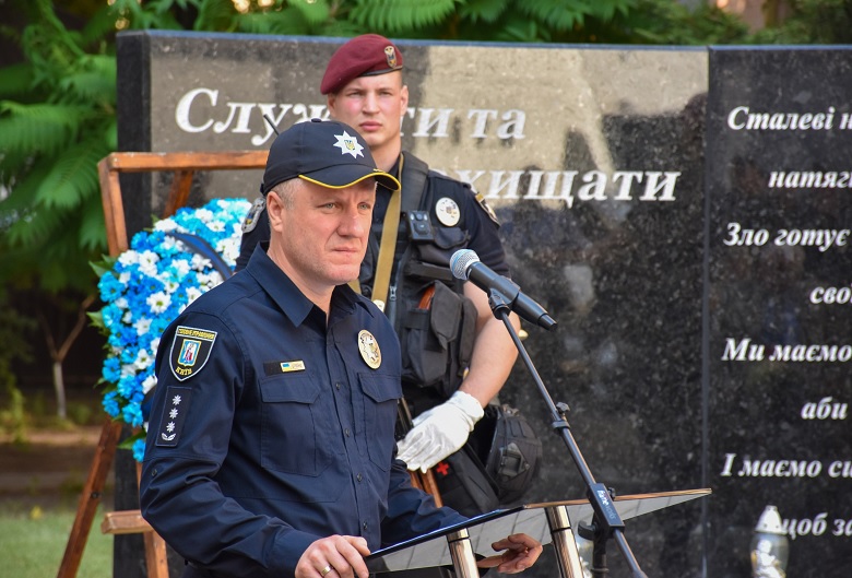«Серед полеглих за Україну є також і працівники поліції. Ті, хто щоденно ведуть боротьбу зі злочинністю, не шкодуючи своїх сил, особистого часу, здоров'я, а часом і найдорожчого, що є у людини - власного життя. На жаль, у цій боротьбі не обходиться без втрат. Ми знову і знову, і не тільки в цей день, звертаємося до світлої пам'яті наших бойових побратимів, що віддали свої життя в ім'я справедливості, закону, захисту наших людей від підступного ворога. Від імені керівництва Головного управління висловлюю глибокі співчуття всім присутнім рідним та близьким загиблих. Подвиги Ваших синів, чоловіків, батьків завжди буде жити в наших серцях, у пам'яті майбутніх поколінь», - звернувся до присутніх начальник поліції Києва Дмитро Шумейко.