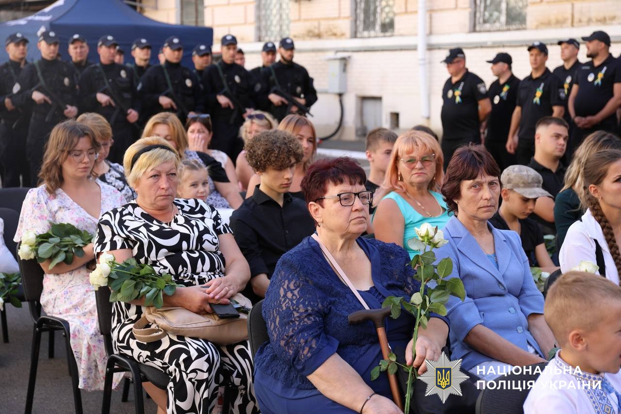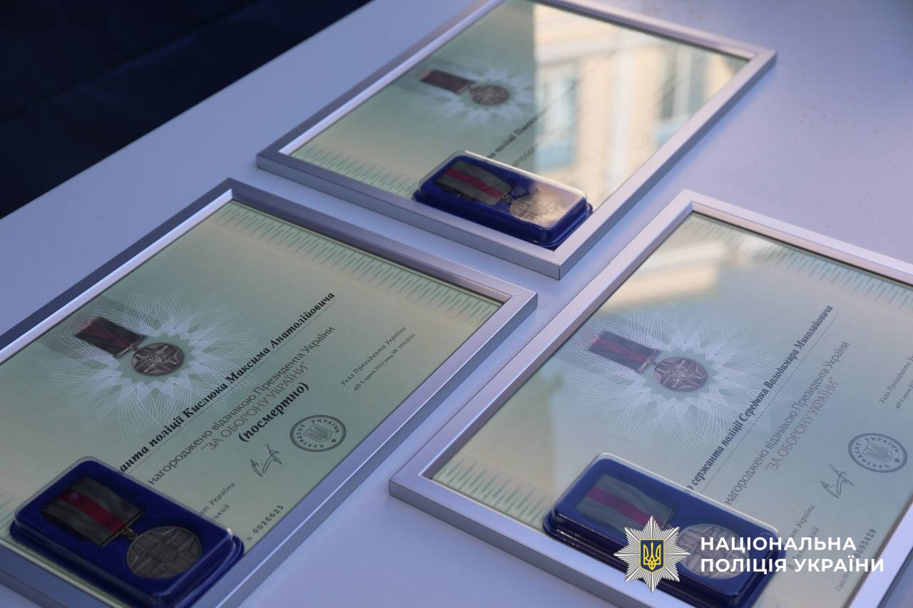 На знак пошани та вдячності від імені держави та Національної поліції України начальник поліції Києва Дмитро Шумейко вручив державні нагороди родинам загиблих правоохоронців.