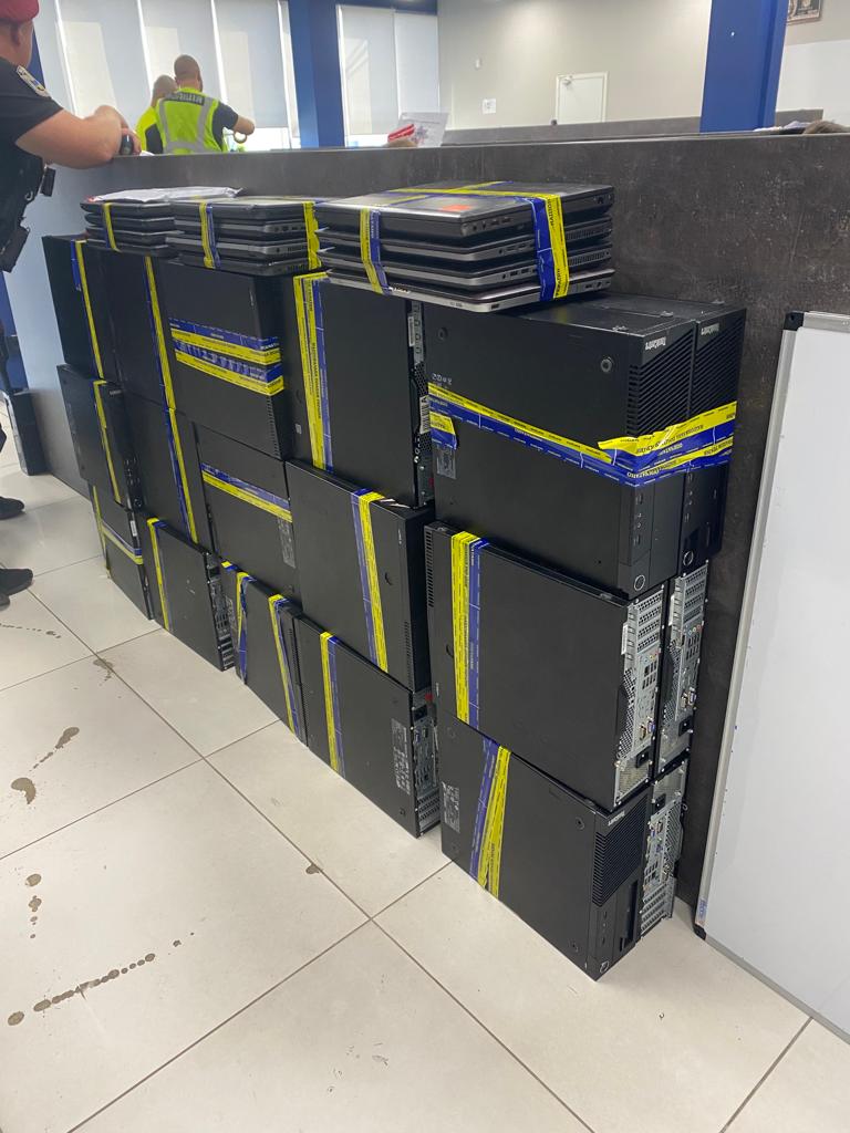 На місці правоохоронці виявили більше сотні облаштованих місць, оснащених комп’ютерною технікою. У рамках розпочатого кримінального провадження на підставі ухвали суду поліцейські провели обшук в офісах, де під час слідчих дій вилучили понад 650 одиниць техніки: системні блоки, монітори, навушники, ноутбуки, мобільні телефони, чорнові записи та гроші різного номіналу та валюти. На час обшуку в одному з приміщень перебувало 30 осіб.