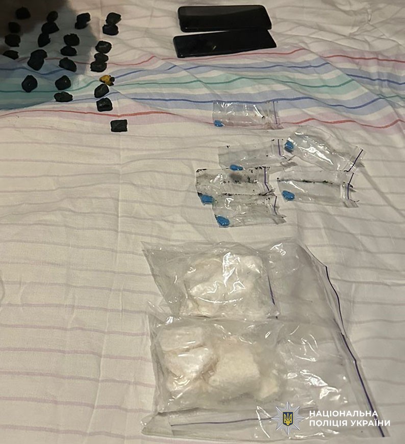 Під час санкціонованих обшуків в оселях зловмисників працівники поліції вилучили близько 250 г амфетаміну, 100 г «Альфа-PVP», 300 г псилоцибінових грибів, понад 50 таблеток МДМА, електронні ваги, а також прилади для пакування. Вартість вилученого товару за цінами «чорного» ринку складає пів мільона гривень. Наркозбувачів затримали в порядку статті 208 Кримінального процесуального кодексу України.
