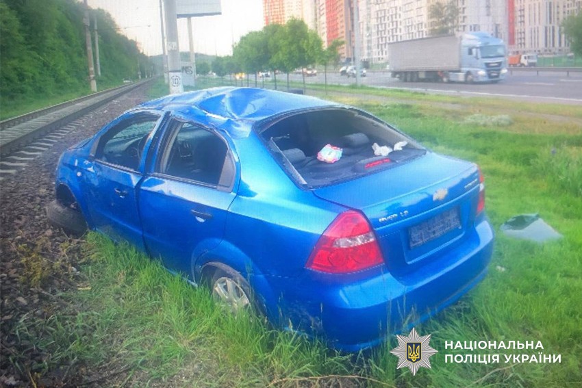 Поліцейські Києва затримали п’яного водія, який не впорався із керуванням та з’їхав у кювет – постраждав пасажир