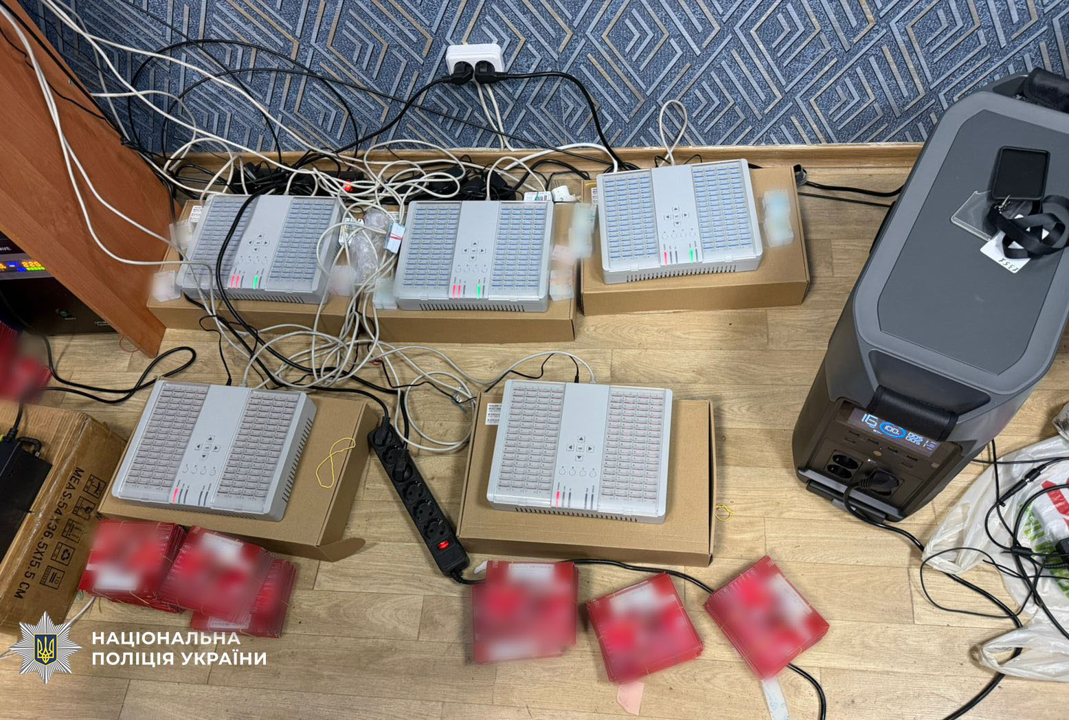 Поліцейські провели 44 санкціоновані обшуки на території Дніпропетровської області та в місті Києві. Вилучено понад 80 мобільних телефонів, комп’ютерну техніку, готівку, чорнові записи, копії документів, печатки, 13 сім-банків та понад 5 тисяч сім-карток.