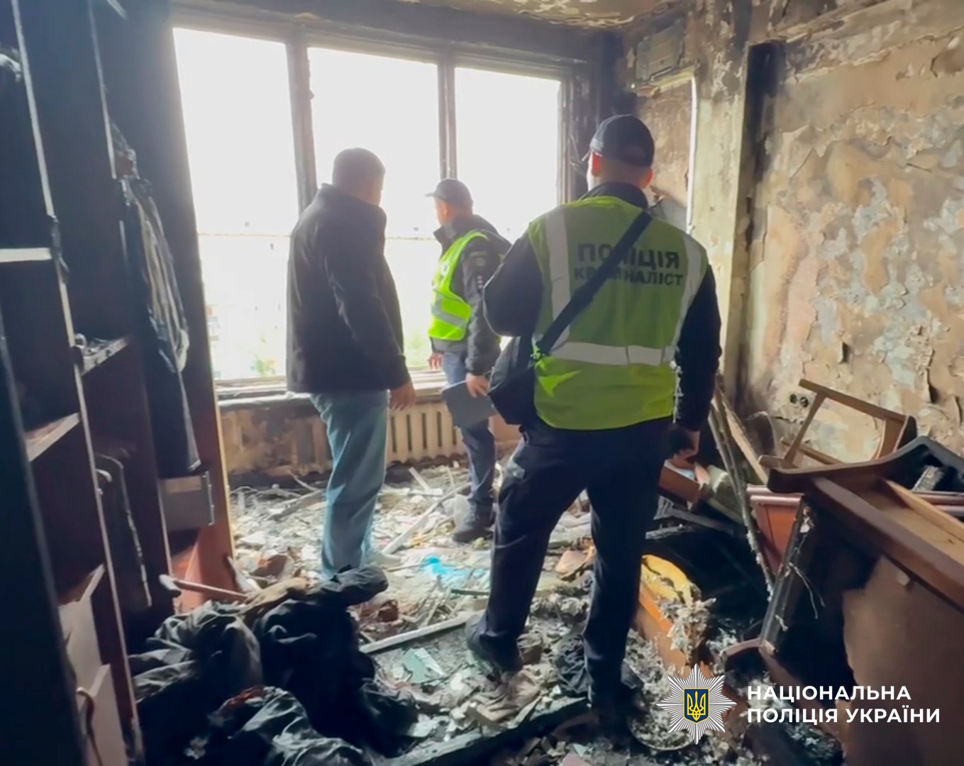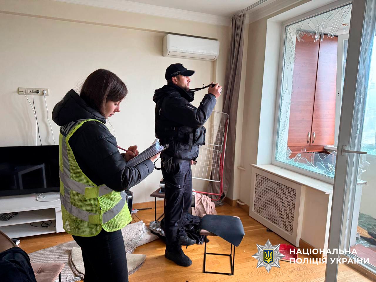 Правоохоронці оглядають помешкання громадян, фіксують наслідки чергового ворожого обстрілу. Станом на 15:00 охоронці порядку прийняли близько 150 заяв від потерпілих щодо пошкодженого майна.