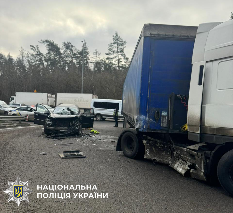 Попередньо встановлено, що керманич вантажного автомобіля DAF під час виконання маневру розвороту у напрямку міста Житомир не надав перевагу у русі та допустив зіткнення із автомобілем Mercedes, який рухався у зустрічному напрямку.