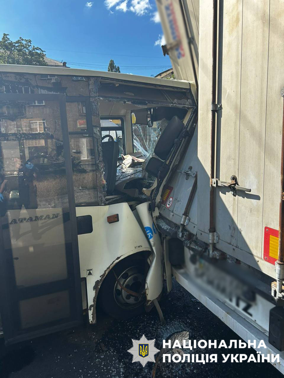 Попередньо встановлено, що водій громадського транспорту не дотримався безпечної дистанції та скоїв зіткнення із припаркованою у крайній правій полосі вантажівкою.