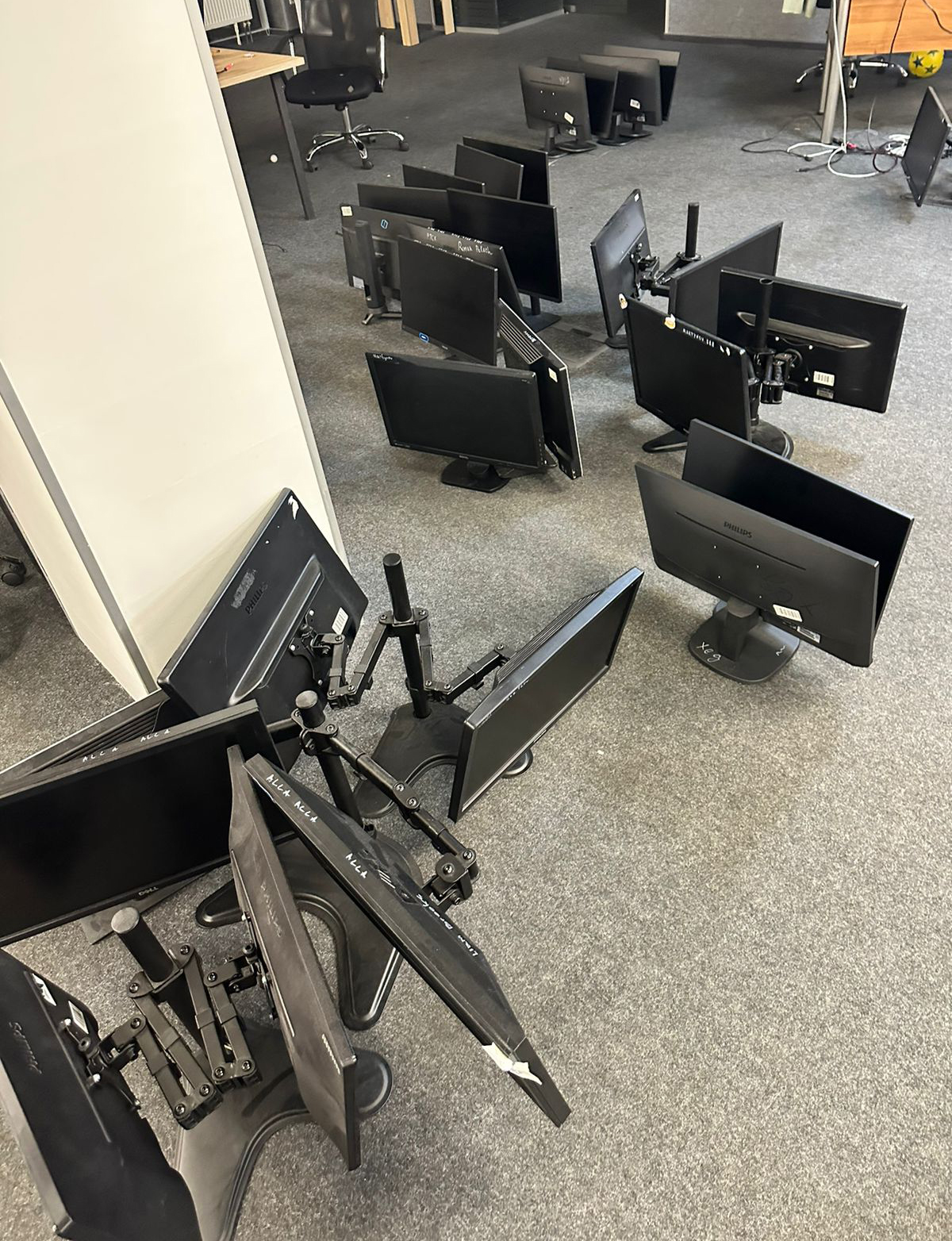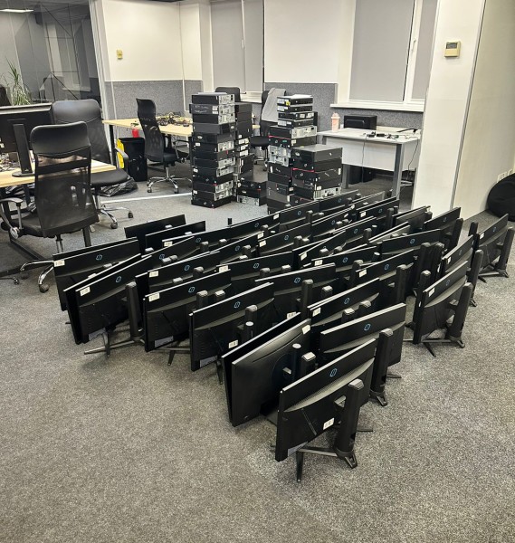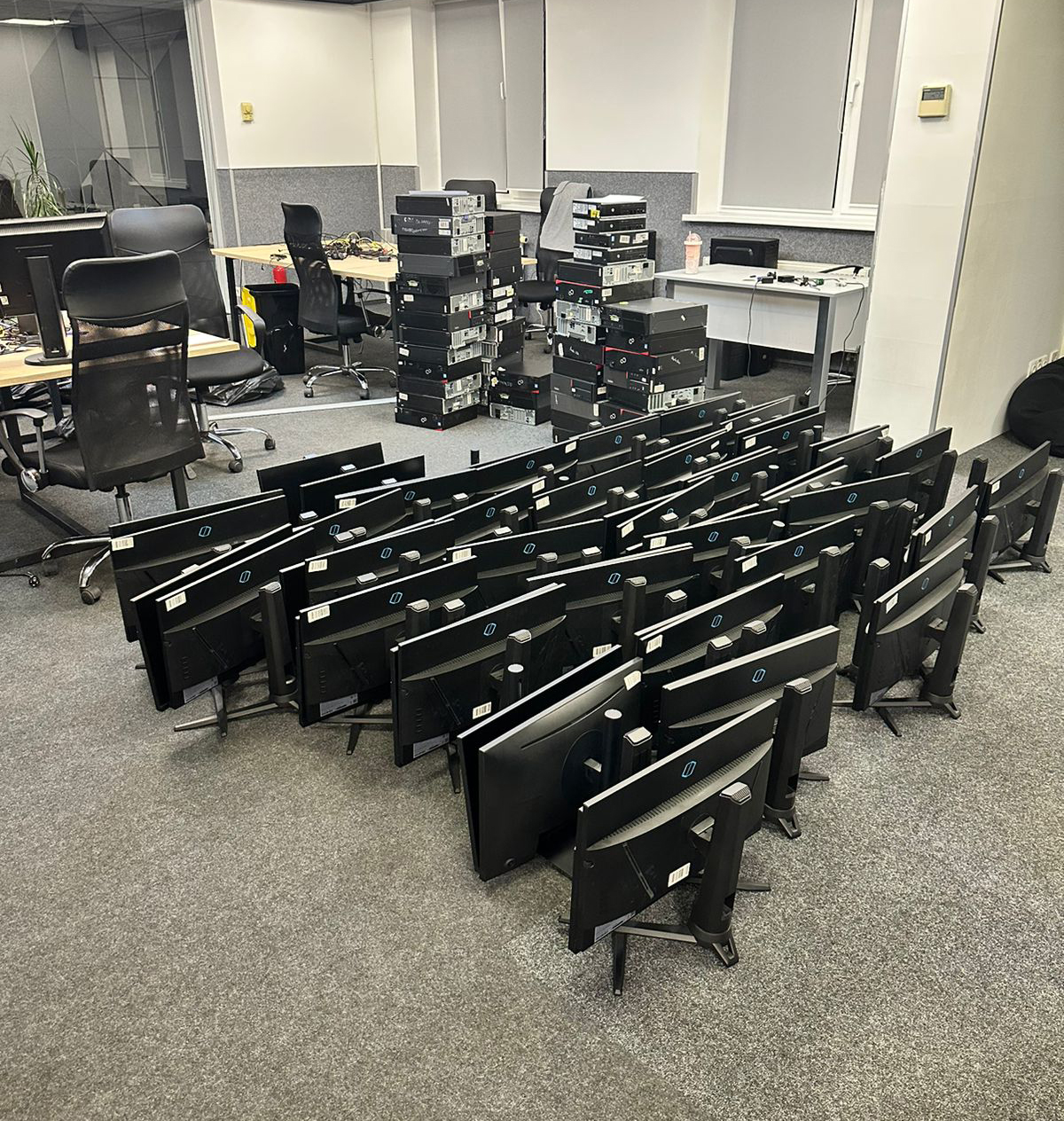 На місці правоохоронці виявили більше сотні облаштованих місць, оснащених комп’ютерною технікою. У рамках розпочатого кримінального провадження на підставі ухвали суду поліцейські провели обшук в офісному приміщенні, де під час слідчих дій було вилучено 124 системні блоки, 233 монітори, 192 мишки, 187 клавіатур та 135 навушників.